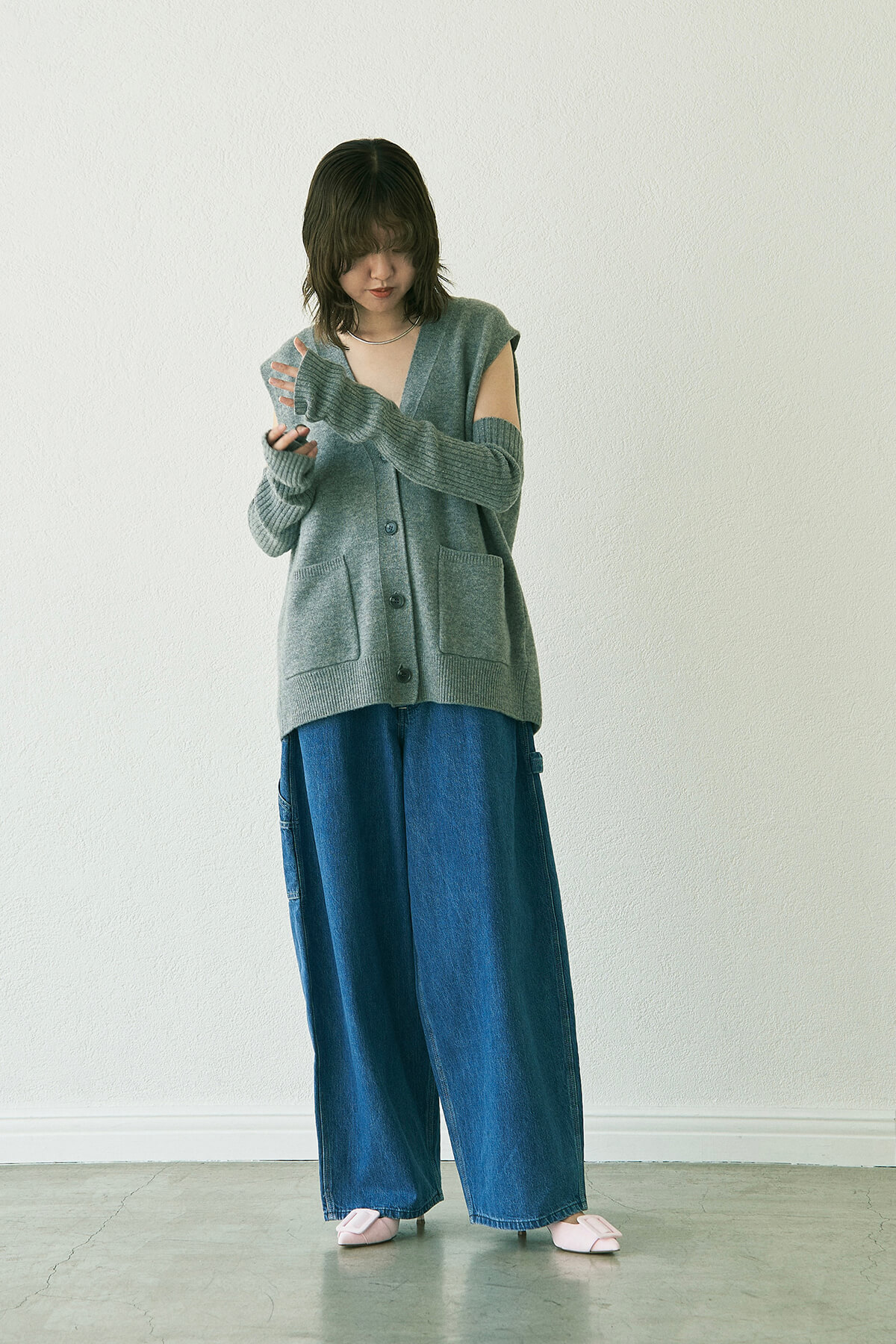 third reasons オニキスTOP NEC¥58,300(税込)9月入荷予定定番のペインターパンツをオーバーサイズ&カービーシルエットにアップデートしたこのパンツは、秋のスタイルにアクセントをつけられる1本。大きめサイズをウエストでぎゅっと絞って穿く今年らしい着こなし方には、さりげない肌見せが叶うアームウォーマー付きのニットベストとピンクのパンプスでレディなバランスに。