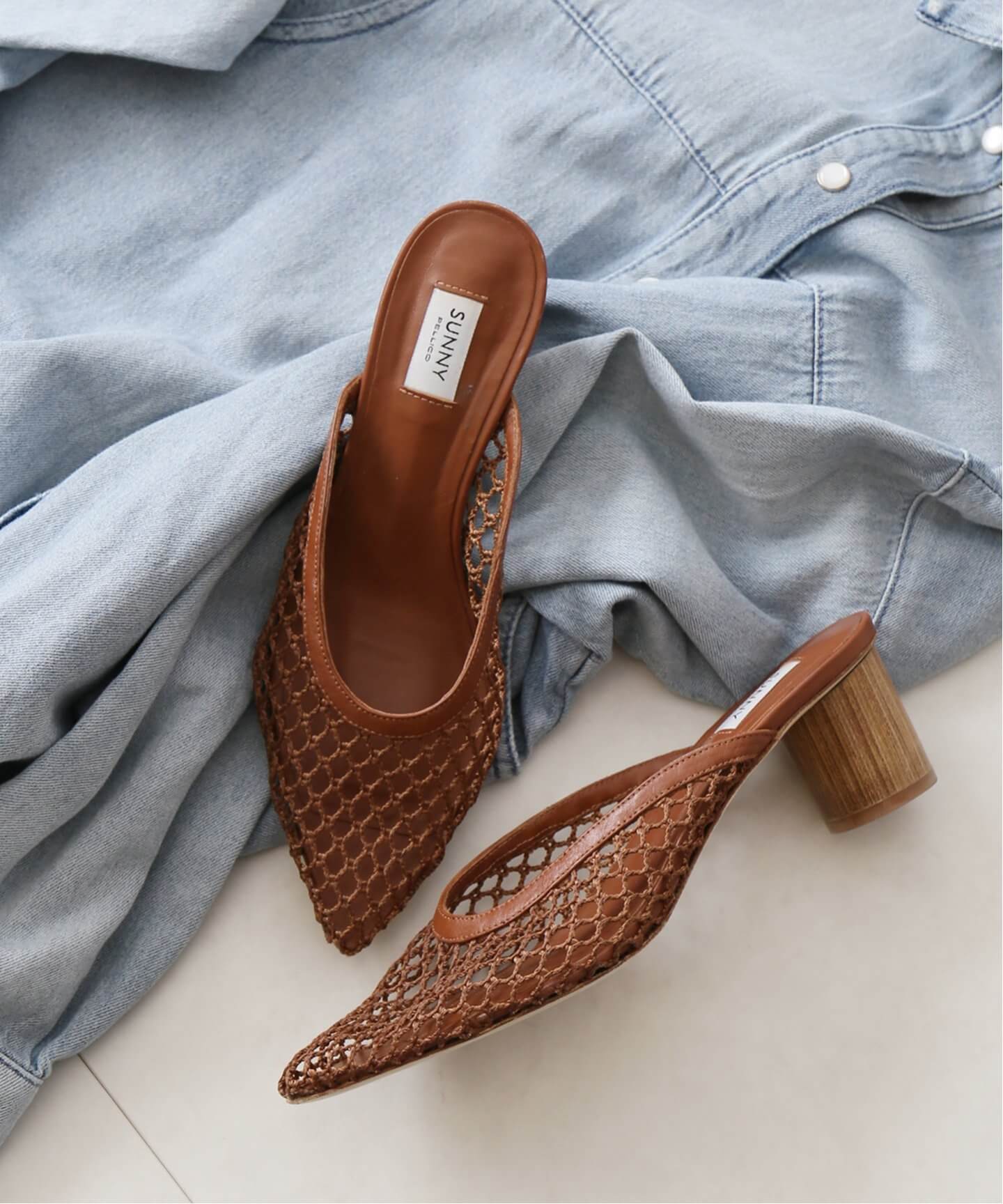 涼しげなメッシュ編みのデザインが、華奢な足元を演出。