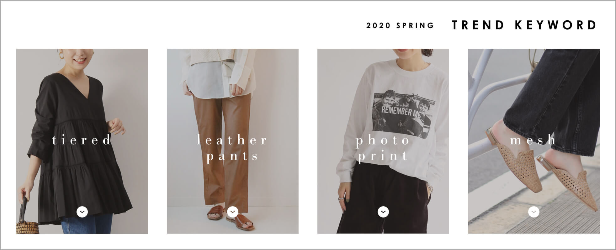「ティアード」「レザーパンツ」「フォトロンT」「メッシュ」別に
