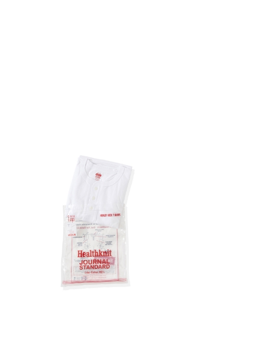 ヘンリーネックシャツのヘンリーの語源って、ご存知ですか?またまた質問から入りましたが(!)、ヘンリーネックはイギリスで1839年から開催されている「ロイヤル・ヘンリー・レガッタ」に出場する選手のユニフォームが、その衿型の由来とされています。この形が徐々に浸透し、その後アメリカへ渡ったそうです。そんなヘンリーネックシャツですが、代表的なブランドといえば、言わずもがな<Healthknit(ヘルスニット)>でしょう。今季<ジャーナルスタンダード>では、そんな<ヘルスニット>の代名詞でもあるヘンリーネックシャツを別注しました。しかも、生地、パターン、そしてパッケージまでのすべてを変更した完全別注モデル。ゆったりとしたシルエットを(サイドに縫い目のない)丸胴で仕上げ、さらにタグとパッケージには<ジャーナルスタンダード>のネーム入り。今までのヘンリーネックシャツとは一線を画す1枚は、この秋のスタメンとして活躍してくれること間違いなしです。