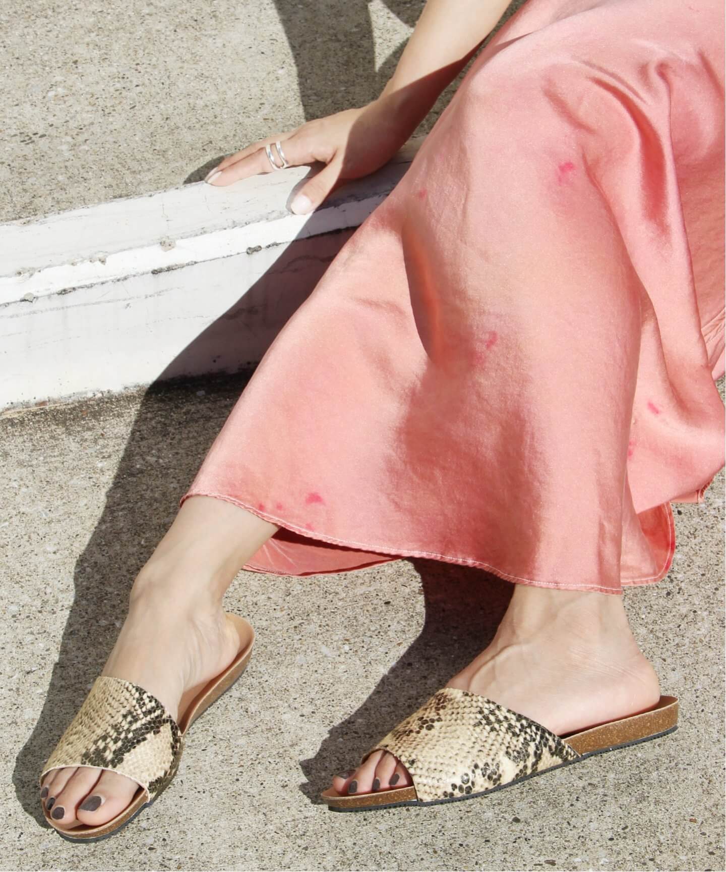 抜け感をメイクさらっとはけるフラットサンダルは、