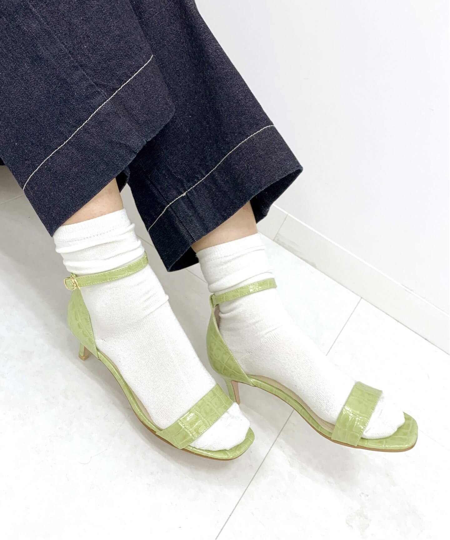 ヒールまでワントーンでまとめたいスカートにもパンツにも汎用性高いミュールは、