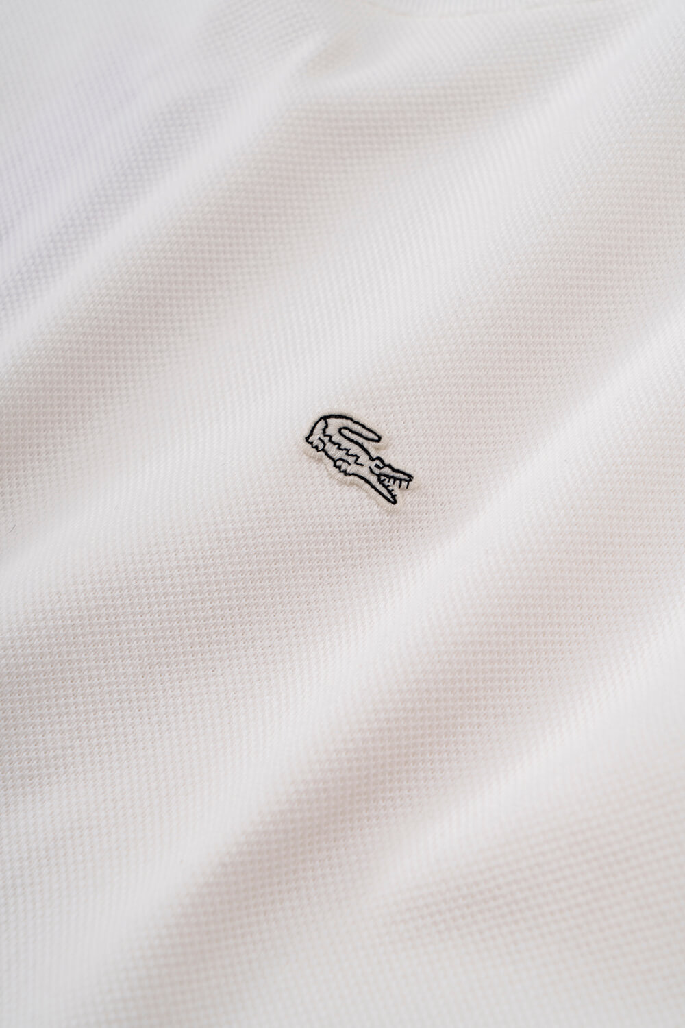 「<LACOSTE(ラコステ)>といえば、やはりポロシャツが好きです。特によく着ていたのが、古着屋で見つけた後ろ丈が少し長いUSA企画の<IZOD LACOSTE(アイゾットラコステ)>。みんなと違うのを着てるのが嬉しくて、着倒していました。<ラコステ>はポロシャツが1番ですが、今回の<ジャーナルスタンダード>別注は、首元が少し高いモックネックという点がポイントで、通常のクルーネックとは異なり、かなり気になっています。今は灼熱の日々で想像し難いですが、秋以降はこの少し高い襟元をインナーとして取り入れたいです」