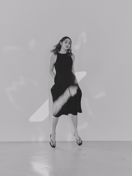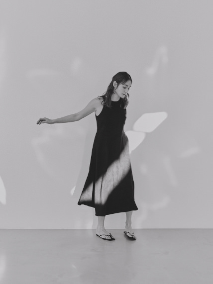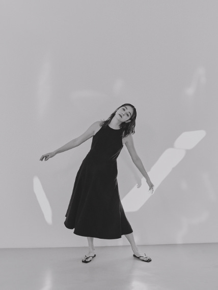 アクセサリーをつけず ただ潔く、一枚で。 佇まいが際立つブラックドレス