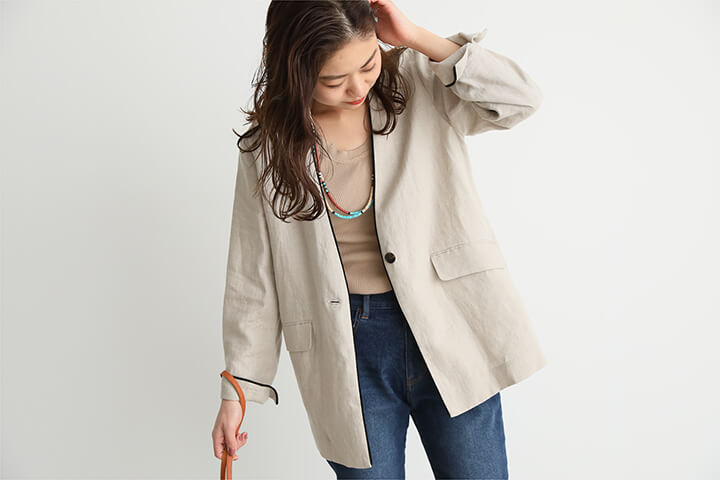 - JOURNAL STANDARD relumeフレンチリネンノーカラージャケット◆¥15,400(税込)
