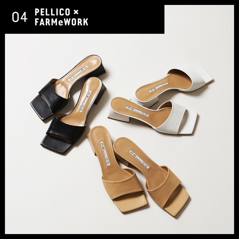 - PELLICOから今年大注目のスクエアトゥのヒールのサンダルをピックアップ。