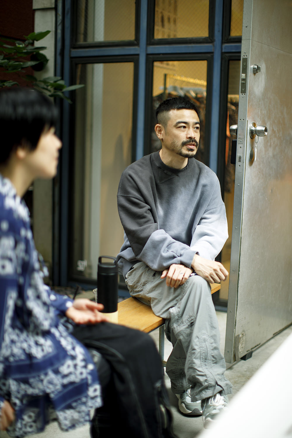 「そう、この染めのスウェットも1点ずつ職人さんに手で染色してもらっているので若干グラデーションの幅などに個体差が出てきます。量産される服でありながら、ひとつとして同じ染めがないユニークさを味わっていただけるのではないでしょうか」(佐々木)