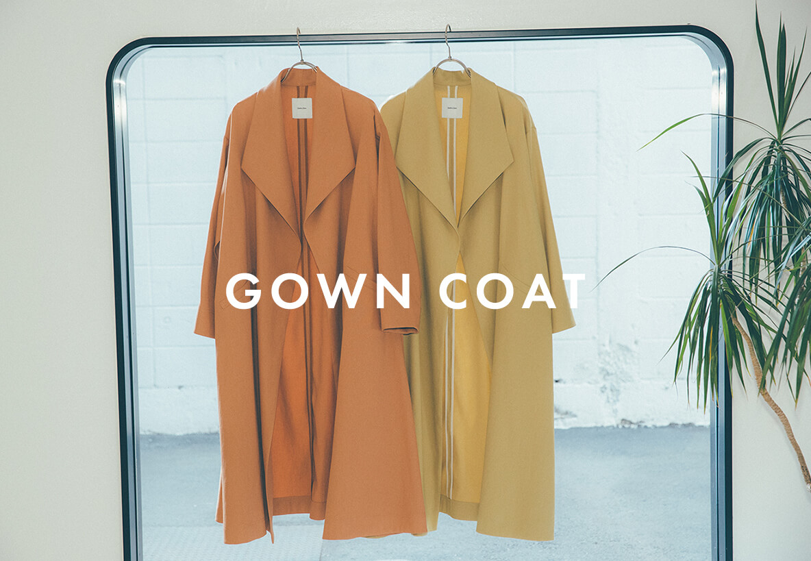 大きな襟が特徴的なガウン風コートは、マットな質感の程よいハリコシがある生地で仕立てた本格的な一着。気負わずさっと羽織れるオーバーサイズシルエットで、ゆれるロング丈がエレガントな女っぽさを演出。スタイリング次第で、通勤からプライベートまで幅広いシーンでデイリーに活躍する。