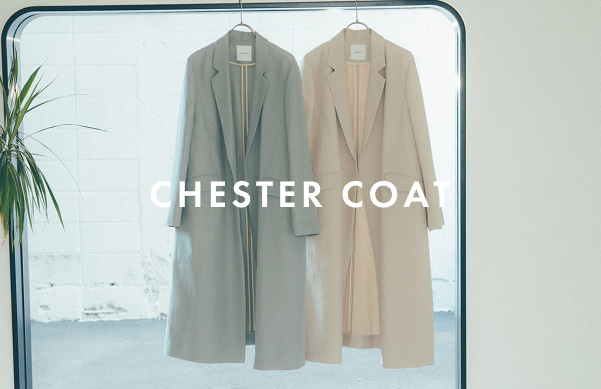 パウダーマットな質感とシルクタッチな風合いで、 セットインスリーブのすっきりとした大人シルエット が新鮮なチェスターコート。長めの着丈に、フレアラインに広がる贅沢な分量感が、シンプルながら華やかな印象に。マニッシュになりやすいチェスターコートでも、ノーボタン仕様にすることで柔らかなドープが生まれ、女性らしさが引き立つデザイン。シャツジャケットのような感覚で気軽に羽織れる一押しの春アウター。