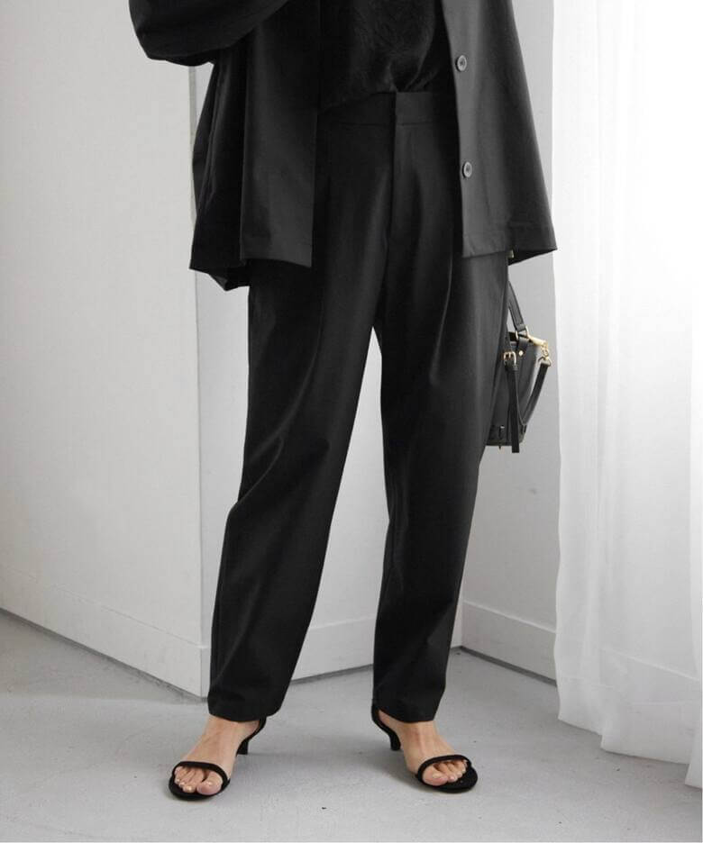 美脚パンツは高機能も嬉しいスタイルアップ効果抜群のテーパードパンツは、relumeの快適素材SPENSIERATOに注目。ストレッチが効いて動きやすく、UVカットに加えて急な雨にも安心な撥水加工をプラス。シワになりにくいのもグッドポイント。