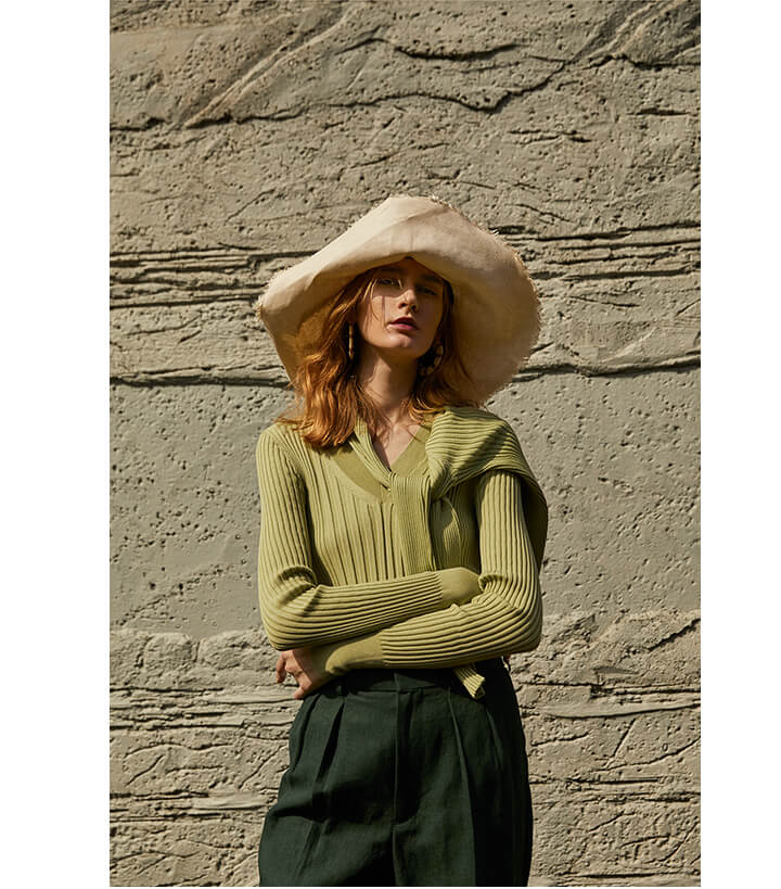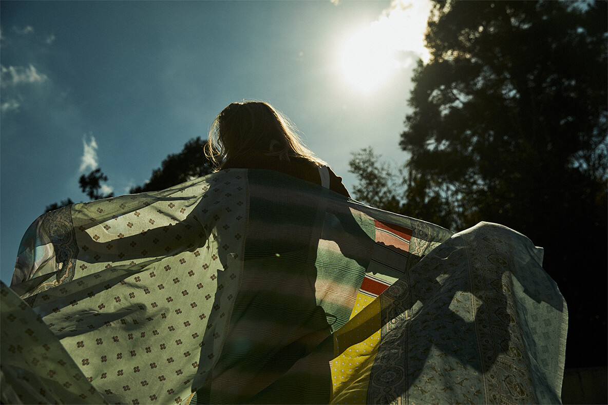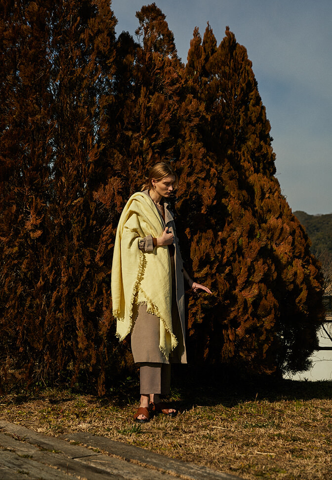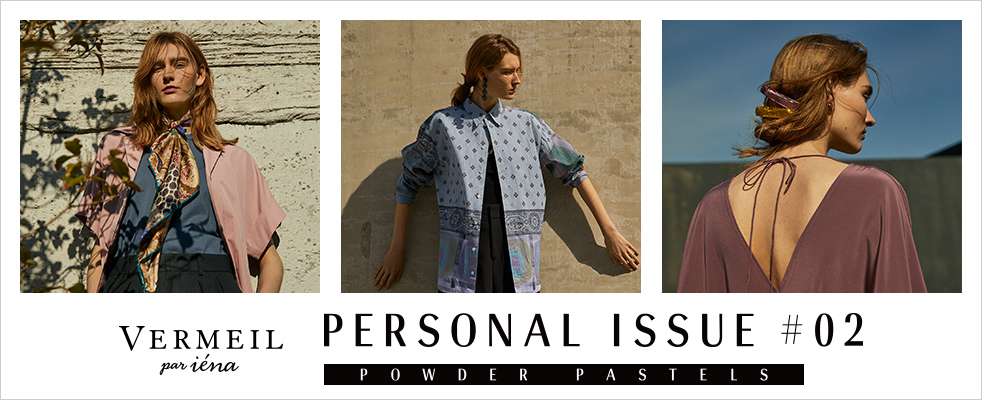 パウダーがかったパステルにニュアンスカラーを添えて。