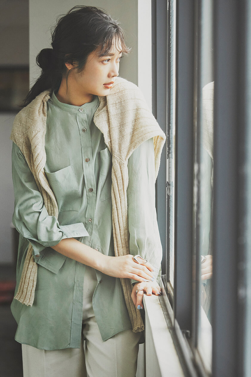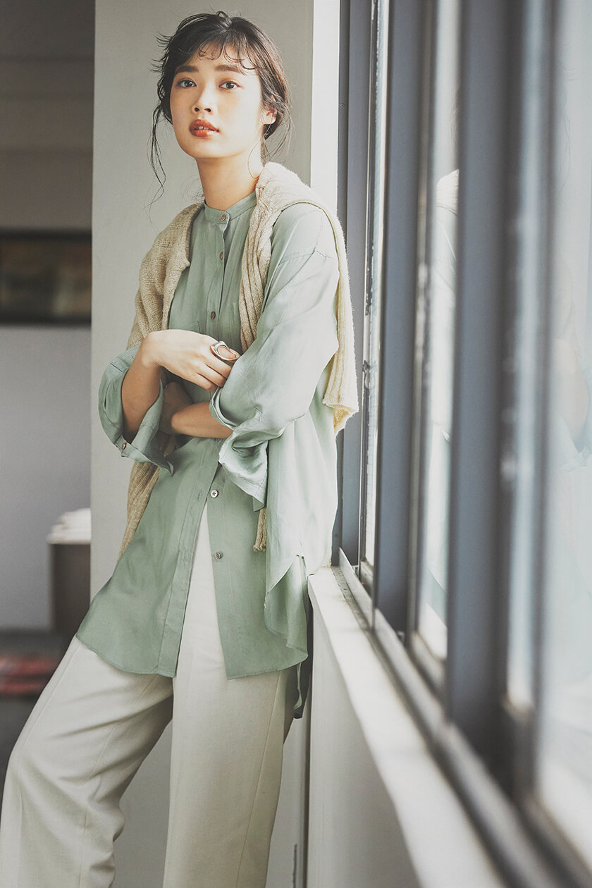 - SLOBE IENAワッシャーロング バンドカラーシャツ◆¥11,000(税込)