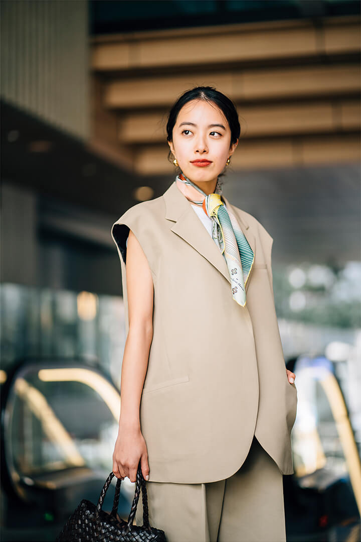 スカーフをネクタイ風に巻けば、こなれ感が急上昇!