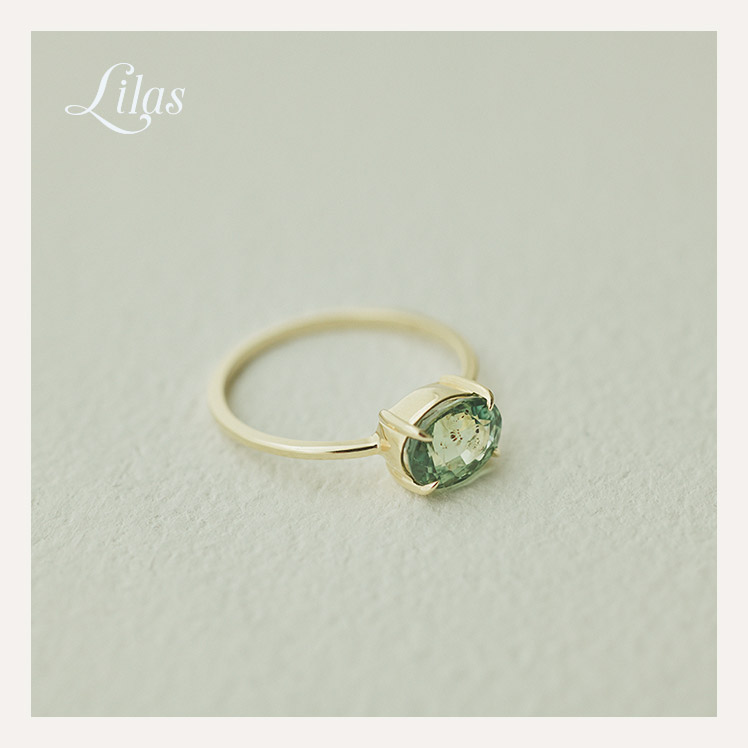 - 瑞々しいグリーンサファイアが美しくきらめく、Lilasオリジナルの限定リング。天然石ならではの内包物がストーンの個性を引き立て、世界にひとつだけの美しさを放ちます。
