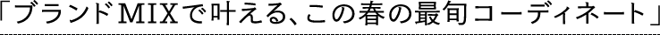 - この春マストなアイテムや素材、トレンドカラーを取り入れた最旬コーデを、ブランドMIXでスタイリング。