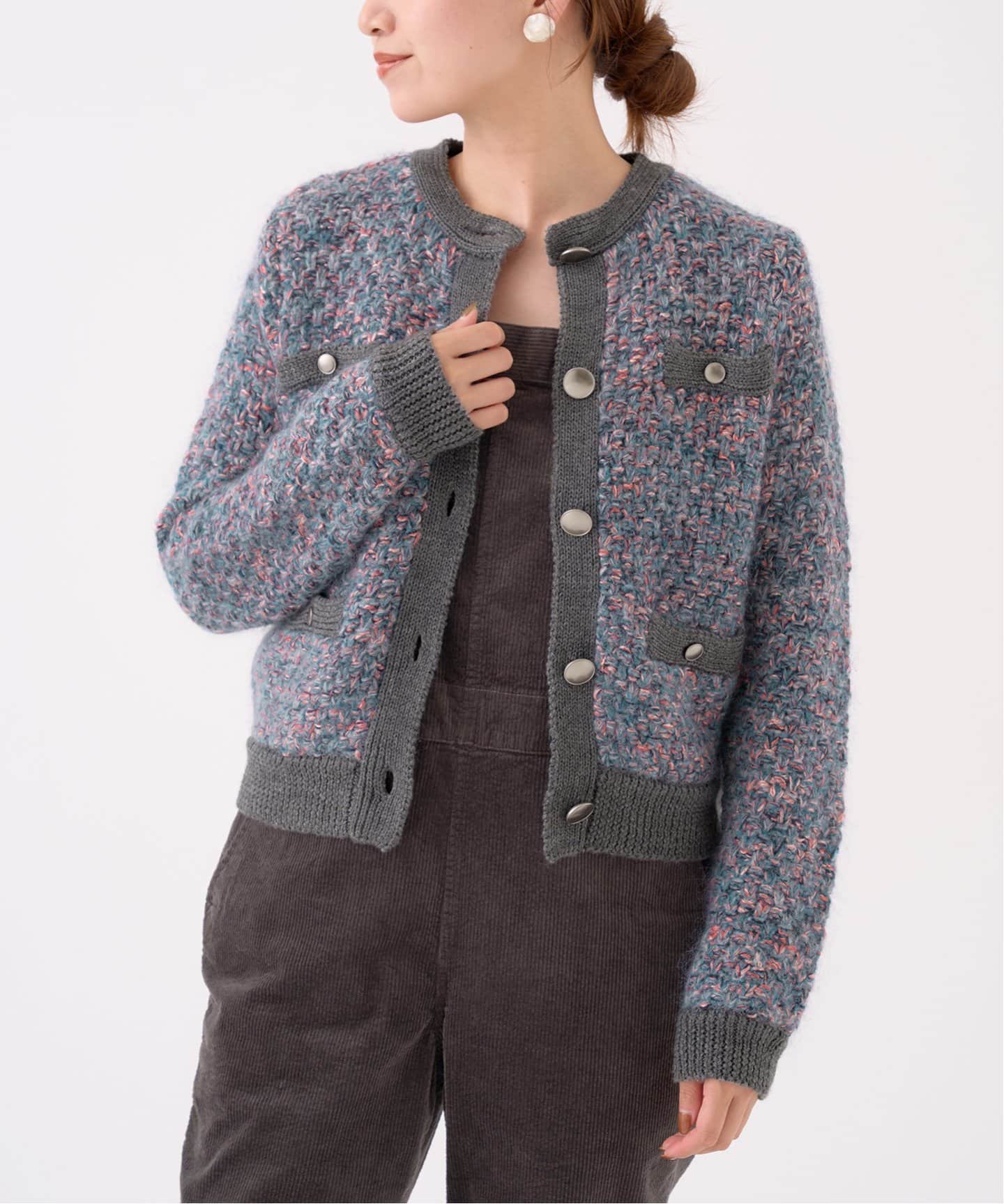 コーデの主役になる華やかニットIENAがRITTOに別注したミックスニット カーディガン。まるでコンパクトジャケットのようなコンサバなルックスだけど、ミックスヤーンニットが可愛らしさも叶うデザイン。JSのインターシャカーディガンはロゴに注目して。