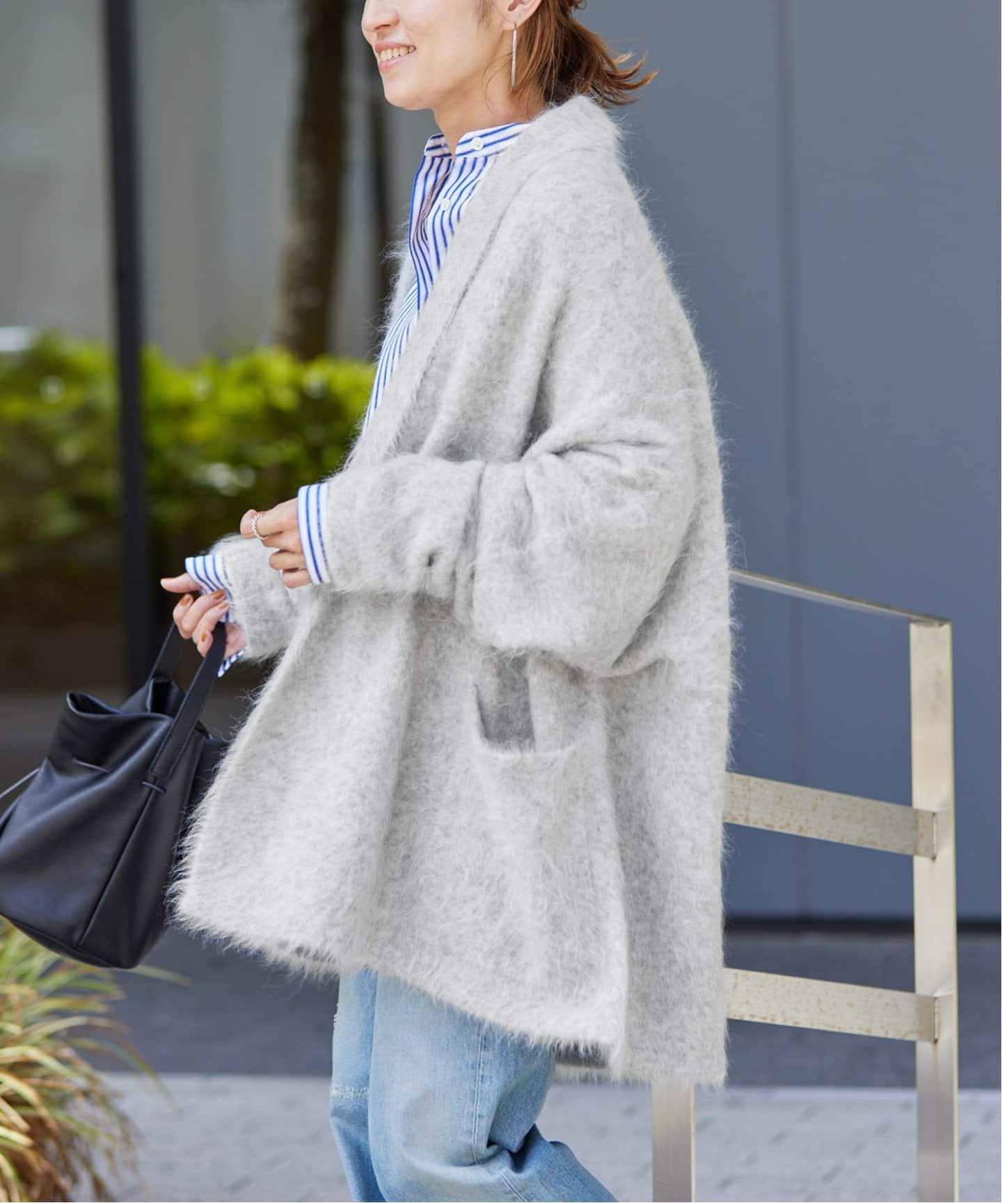 トレンドを満喫できる女っぽニット今年もデイリーに活躍しそうな着流しカーディガンは、FRAMeWORKのALPACA MIX FUR ガウンカーディガンでトレンドも意識。女っぽさとトレンドを両得できるSpick & Spanのオフショルダー ニットプルオーバーも。