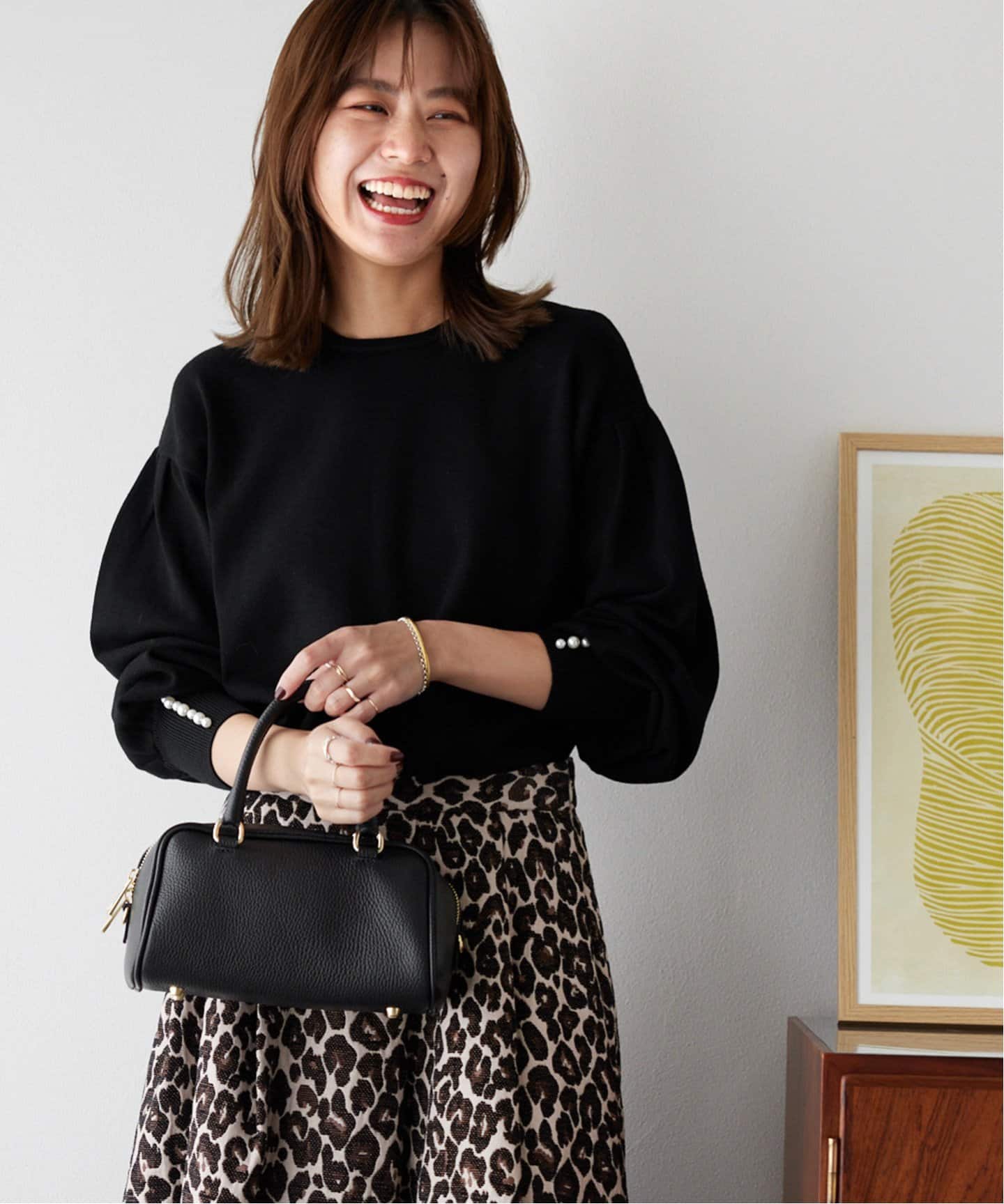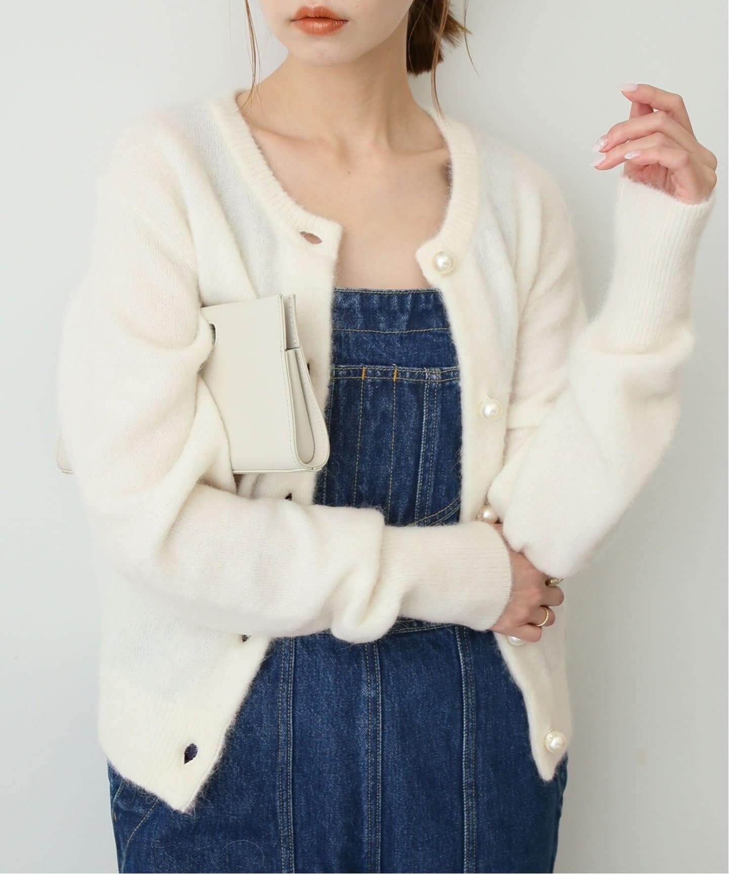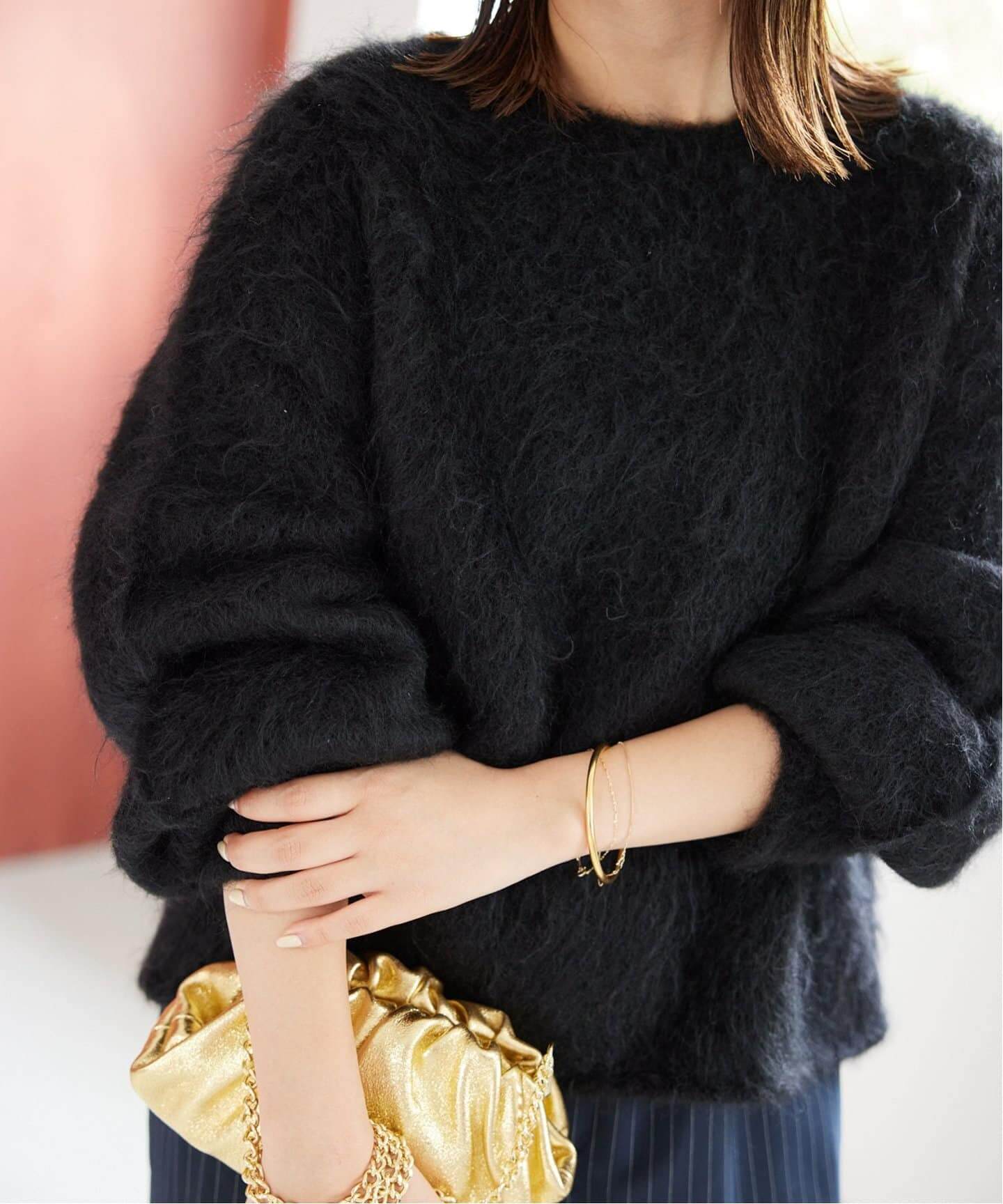 ワンランク格上げするパールニットSLOBE IENAは今年らしいふわふわしたニットにパールボタンをあしらったアルパカ混シャギーパール釦カーディガン。relumeは盛り袖の袖口にパールを並べ、手元を華やかに見せるパール袖クルーネックプルオーバーに注目。