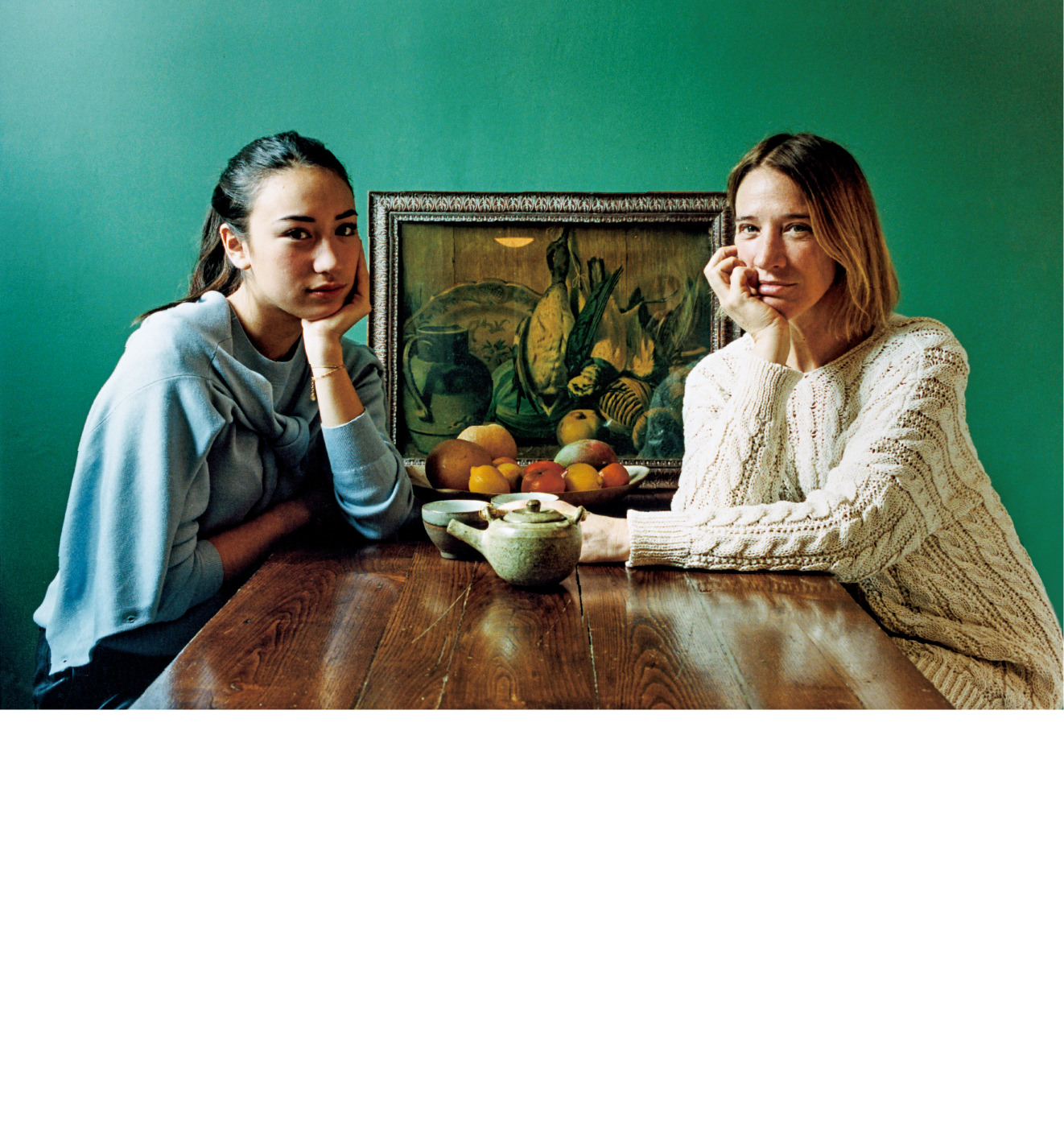 ブルーグリーンの壁のあるダイニングテーブルが、わたしたちのお気に入りの場所。習い始めたギターのこと、インスタで見つけた新しいパティスリー、隣の席に座っている転校生。前世でも母娘だったに違いないなと思うほどに、おしゃべりは尽きなくて。サマーニットは二人のユニフォーム。エクリュのケーブルニットと、淡いブルーのアンサンブル、明日は交換して着ようね。