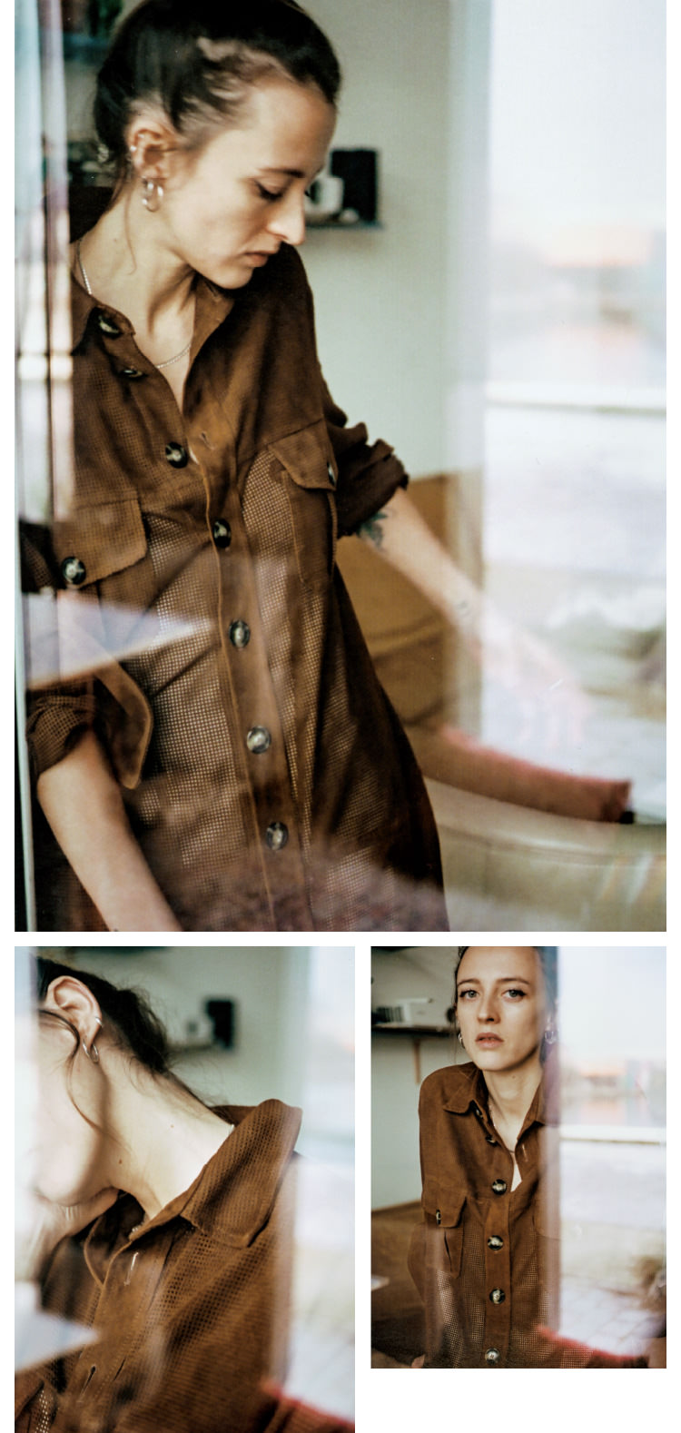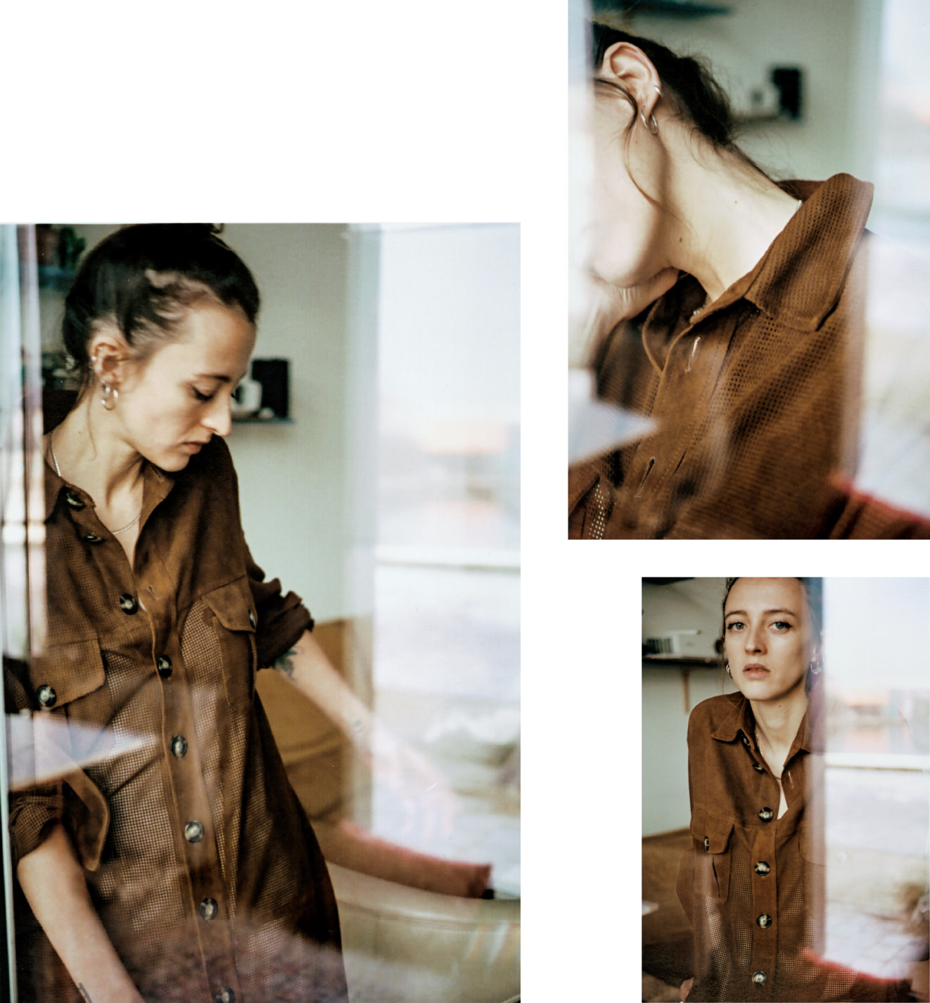 I see a different me in the mirror. This dress, made with an extremely thin fabric is slightly transparent thanks to the afternoon ray. It’s nice to have a bit of transparency which gives this uneasy kind of balance. It speaks for my strong freedom and emotion as well. Yes, it is the strongest love and peace dress.