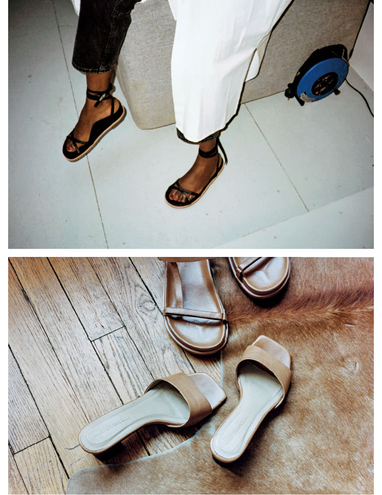 フェットチーネみたいなストラップがぴたっと足首に巻き付く感触。優しい鋭さで美しいフォルムを描くスクエアトゥ。海を愛する彼女がつくるサンダルは、素足で履くことがこれ以上似合うサンダルはこの世に存在しないと思わせてくれる。リオより愛を込めて、暑い夏を満喫するためのサンダルを。