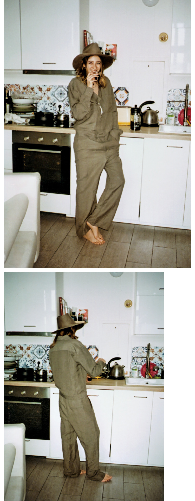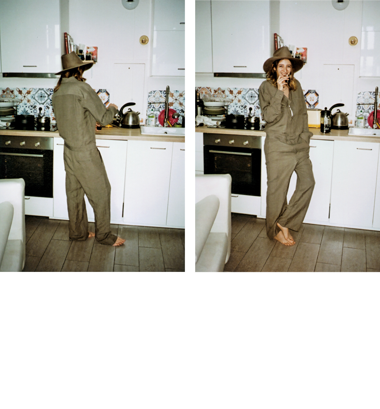 イヴ・サンローランが1968年に発表した、サファリシャツを着たヴェルーシュカのモノクロ写真。野生動物のような眼と大きく開けた胸元が鮮烈で、ピエール・ベルジェの「イヴ・サンローランは女性に力を与えた」という言葉そのものだなと思う。繊細なカーキ色やしゃりっとした麻の手触りに惹かれて手に入れたこのオールインワン。自分だけで密かに「モードサファリ」と呼んでいるこれを着たときに思い出す、ちょっとしたお話。
