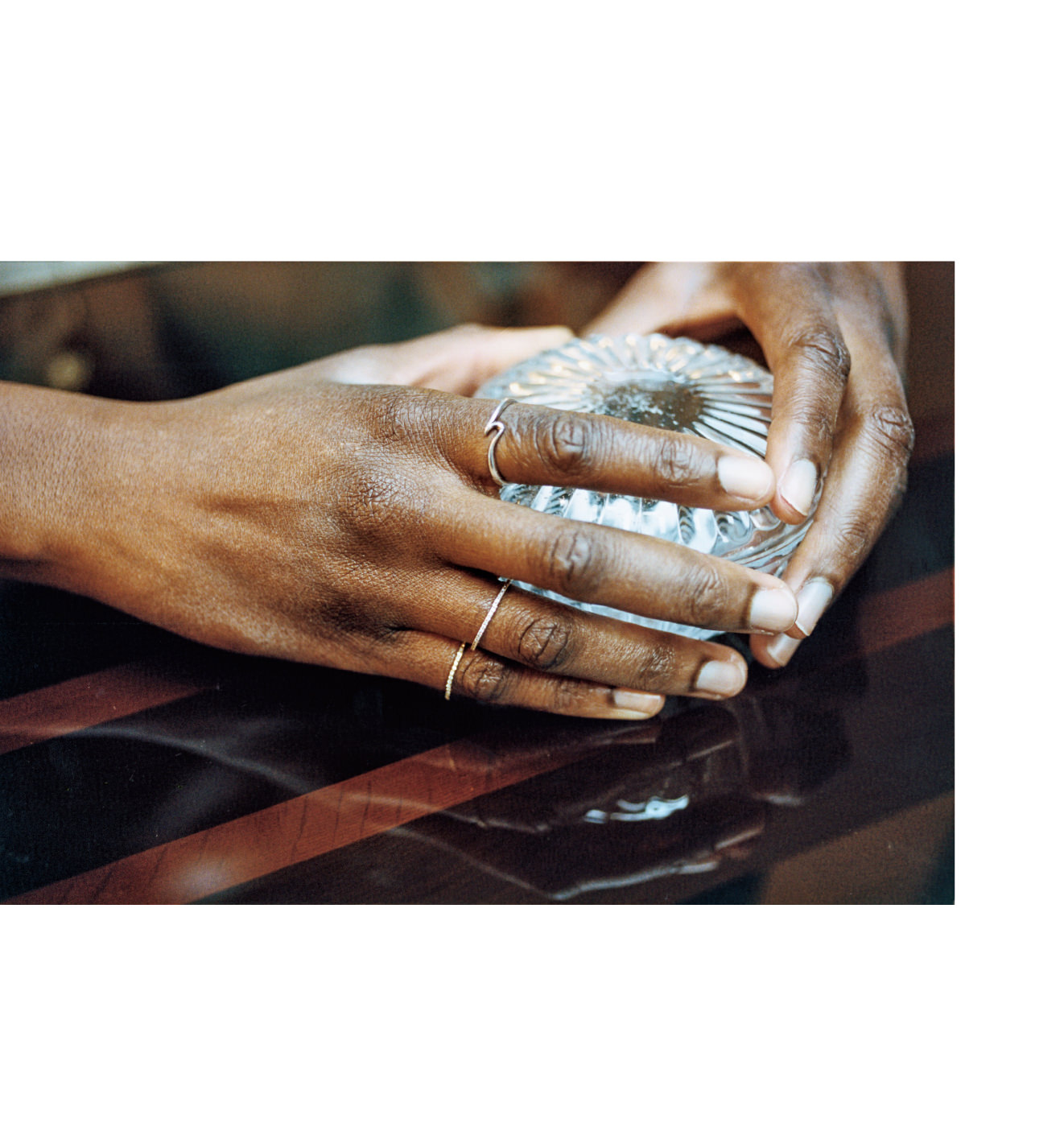真っ白な彼女のアトリエには、ブロカントで少しずつ集めたという不思議なオブジェがぽつんぽつん、と置いてあった。ここへやってくるまでに、どんな人の手を経て、どんな時間を過ごしてきたのだろう。そんな物語を想像するのが楽しいから、古いオブジェを集めるのが好きなのだと。いつも身につけるのは、本物のゴールド。ネックレスとリングを数本ずつ。ともに時を刻んで、いつの日か誰かの手に渡る、そんな物語を思い描いて。