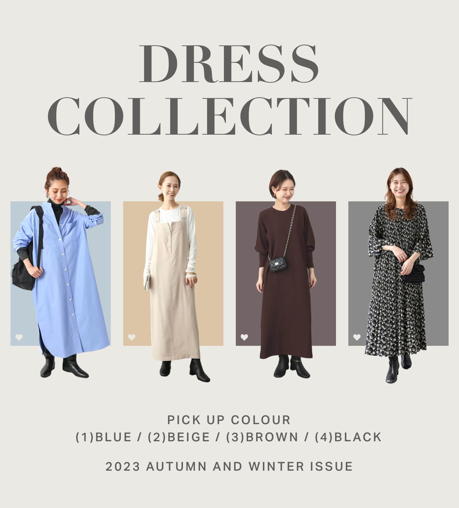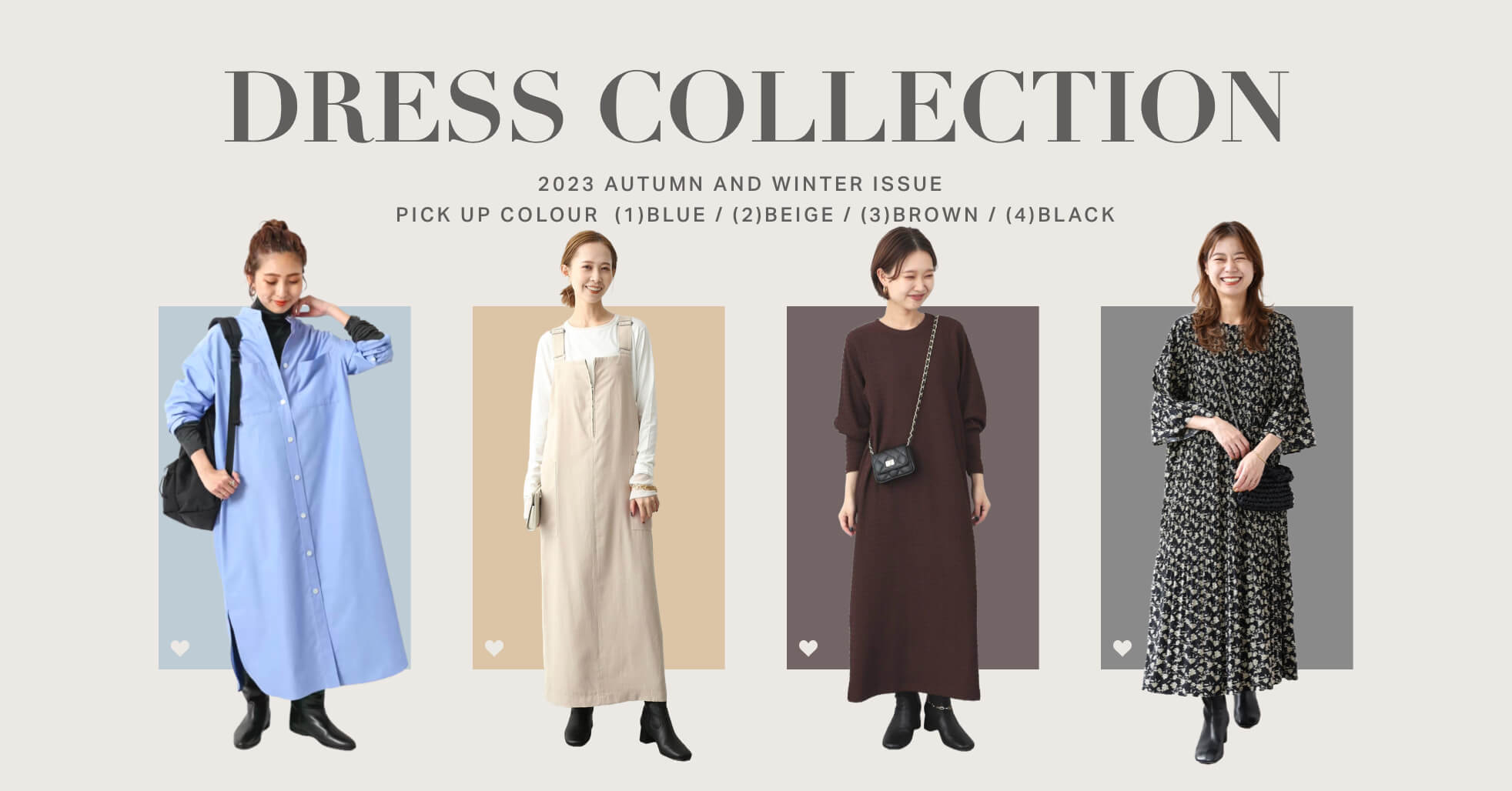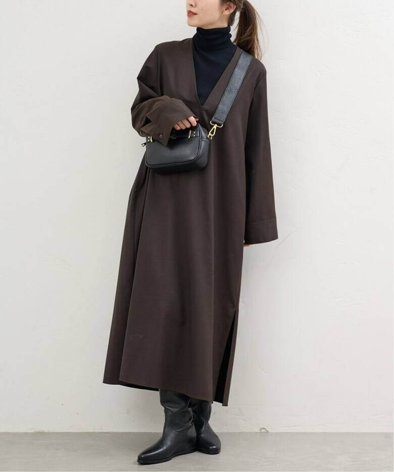 カジュアルに取り入れて秋冬を代表するカラーのひとつ、ブラウン。relumeのタイプライターストライプフレアワンピースやUTILITY BANDED COLLAR MAXI SHIRTワンピースのように、デイリーカジュアルとして気軽に取り入れるのが今っぽい。