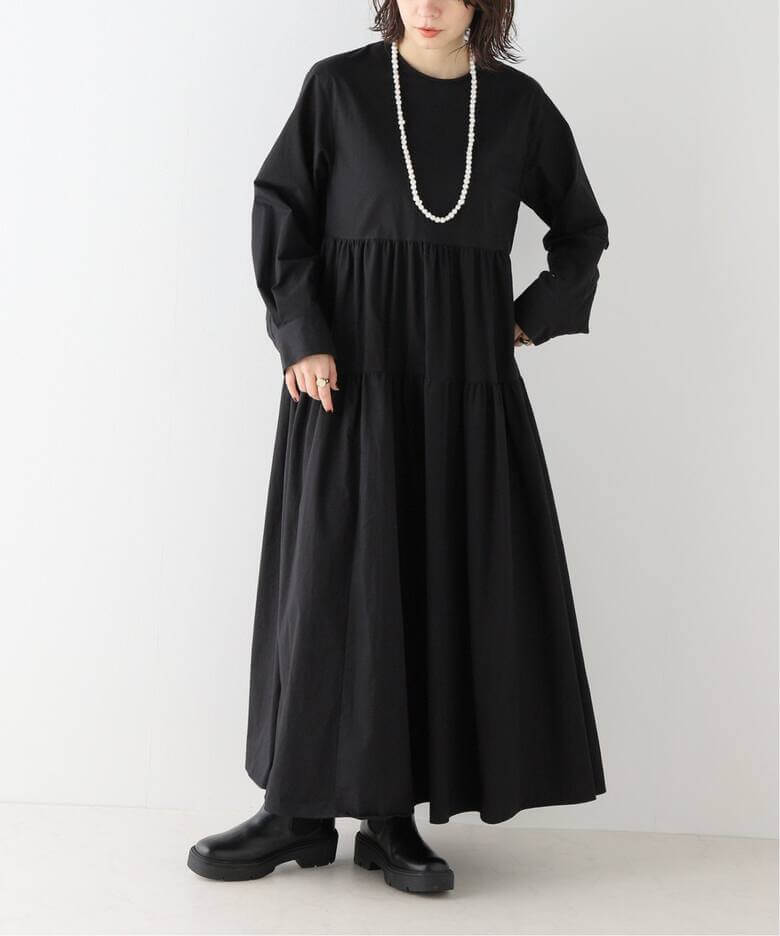 メリハリシルエットでいっそう美しくフォーマルシーンにもOKなブラックワンピース。Spick & Spanのコットンツイルティアードワンピースをはじめ、ボリューミーなAラインやすっきり見えするフレアシルエットを選んで、スタイルに抑揚をつけて。