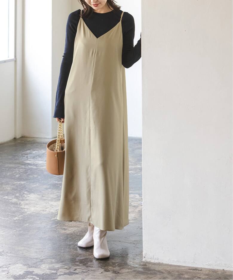 ひとさじのヴィンテージ感をプラスどんなシーンにも寄り添ってくれる上品で柔らかいベージュワンピース。今年はNOBLEのビンテージツイルコンフォータブルキャミワンピースのように、こなれた表情をプラスしてさらに洒落感を高めて。