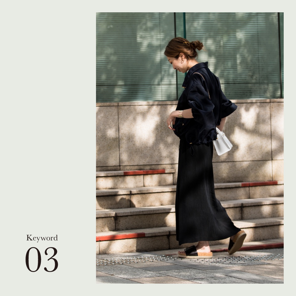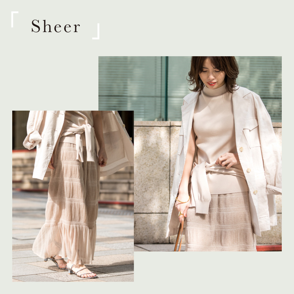 今年一大トレンドの「シアー」を大胆にスカートに落とし込んだアイテム。