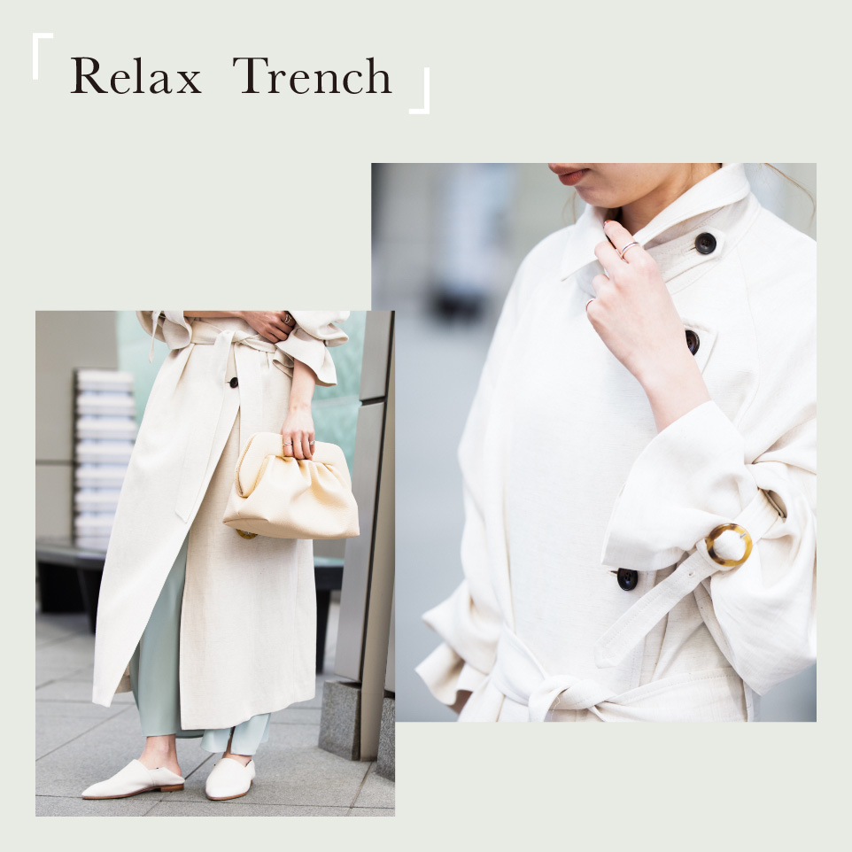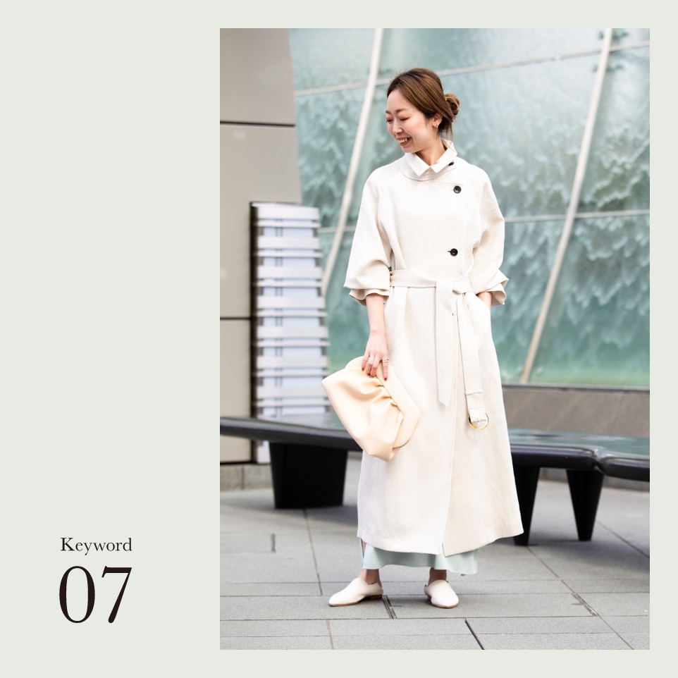 ワンピース風に着こなしてもサマになる一押しのアイテムです。 - NOBLEスラブワッシャー レトロトレンチコート◆¥53,900(税込)