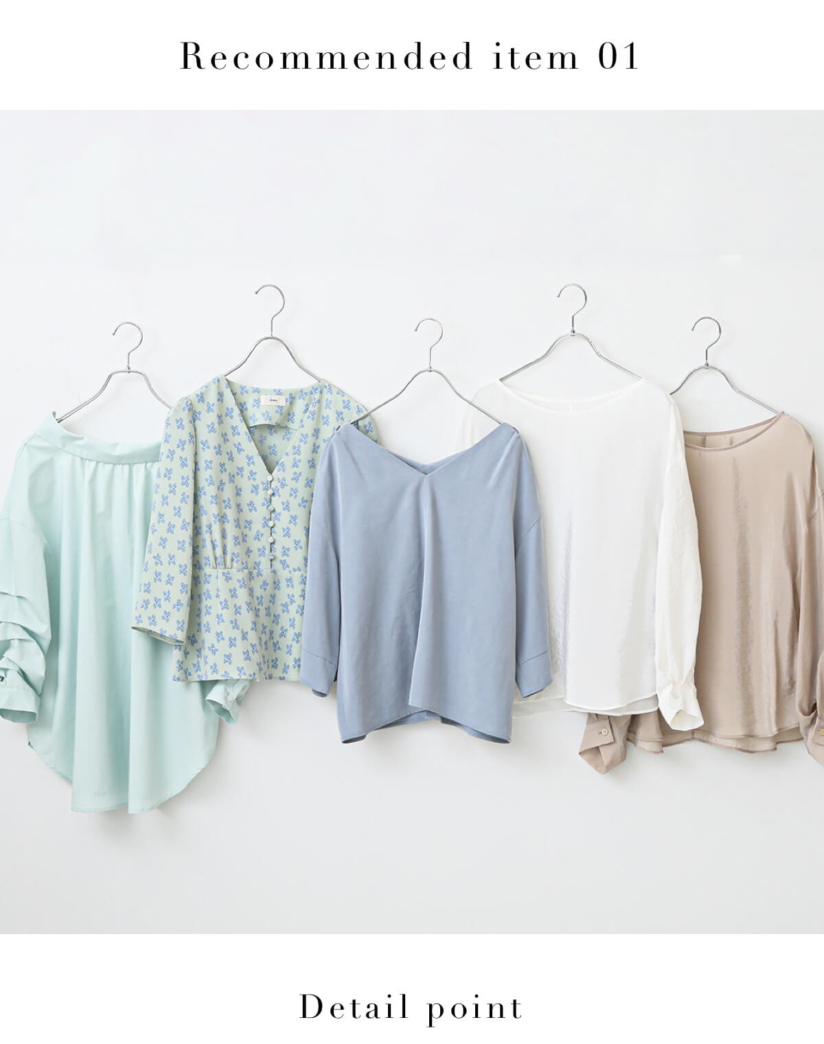 サマーさんらしいくすみがかったニュアンスカラーが豊富なブラウス。ブルー系なら黄みを抑えたスカイブルーやミントグリーン、ブラウン系ならローズブラウンがおすすめです。バックのレースアップが印象的な余韻を残す、女っぽデザインにもトライしたい。 - U by SPICK&SPANバックレースアップシャツ◆¥12,100(税込)