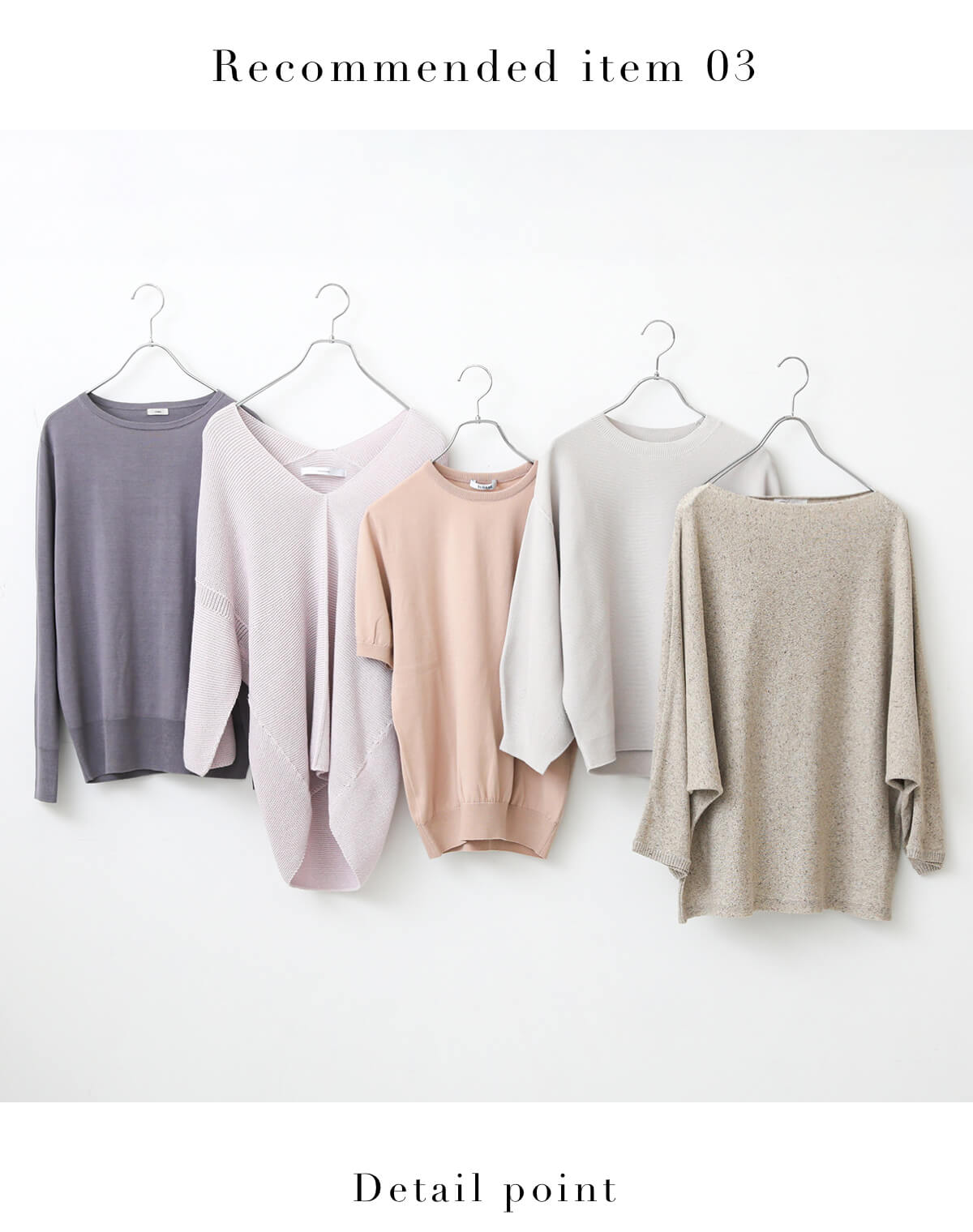くすみカラーが得意なサマーさん。定番で持っておきたいベージュ・グレー系カラーは黄みの少ない涼しげな色を選ぶのがポイント。やや赤みを感じるラベンダーグレーなどが、サマーさんらしいやわらかさを演出してくれます。ボトムスにもフェミニンスカートにも合う、ベーシックなデザインを選んで。 - IENAViscotesse クルーネックプルオーバー◆¥13,200(税込)