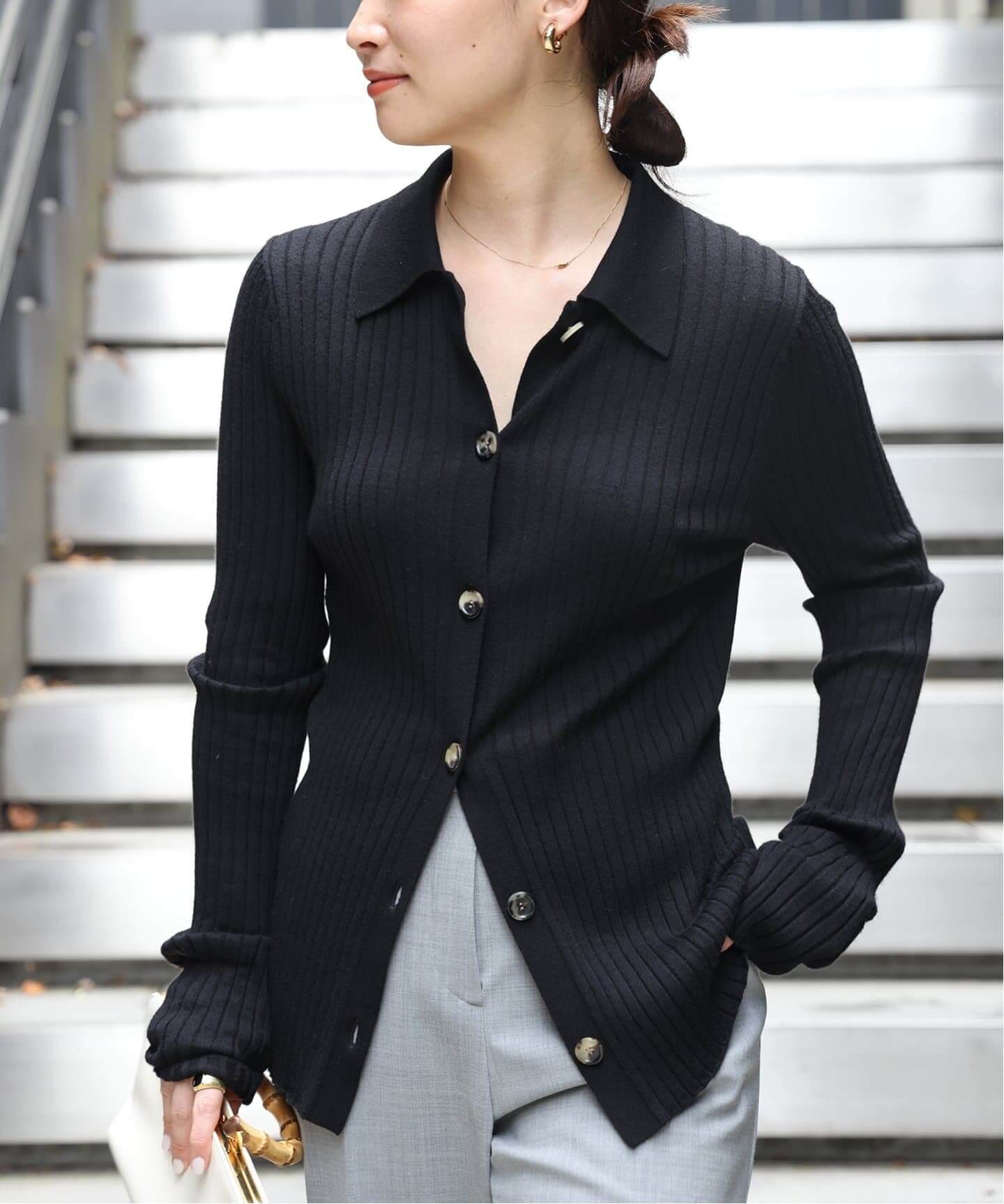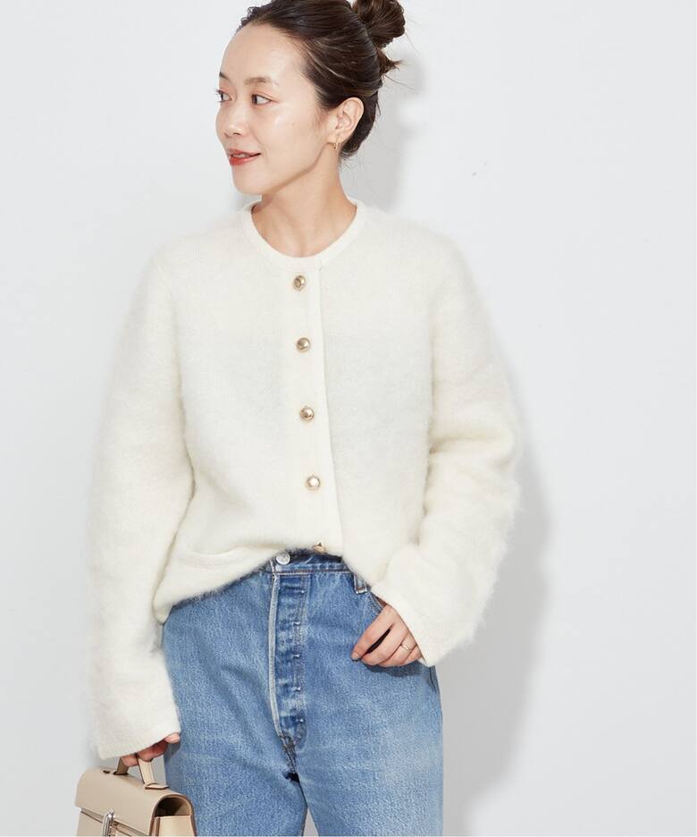 トレンドをキラっと光らせて普段使いに重宝するクルーネックニットや、今年らしいポロシャツニットカーディガンをまずは1枚。トレンドのふわふわ&もこもこな表情が魅力なPlageのモヘヤジャケットはメタルボタンもアクセント。