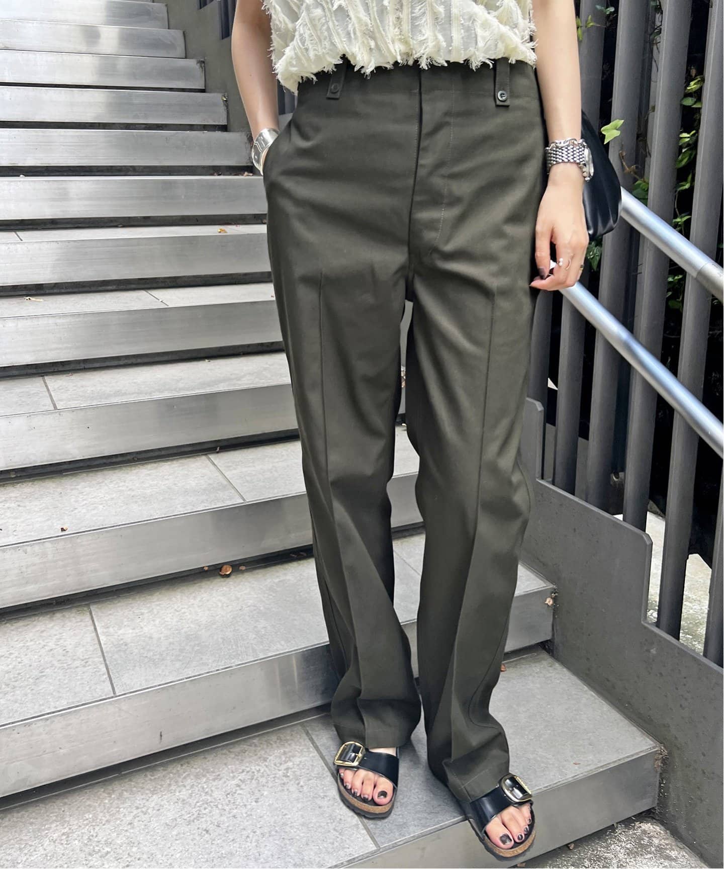 秋素材ボトムスカジュアルにピリッと辛さを足したい時に最適なのがSpick & Spanのセンタープレス入りカーゴパンツ。コーデに華を加えたい時は、フレンチシックに映えるIENAのドットジャガードペグトップパンツをプッシュ。
