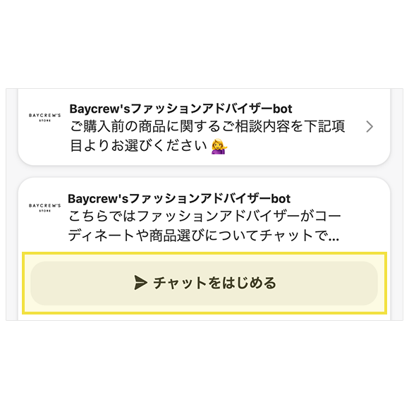 ベイクルーズストアでの疑問や不明点について、24時間応答のチャットボットとオペレーターがお答えします。