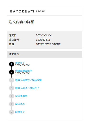 詳細は「注文状況について」をご確認ください。