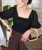 ふんわりとした袖デザインにトレンド感のあるシャーリングが施された、コンパクト見えするシルエットになっています。シャーリング生地でフィット感があり、短めの丈感でハイウエストのボトムスやワイドパンツとも相性抜群です。