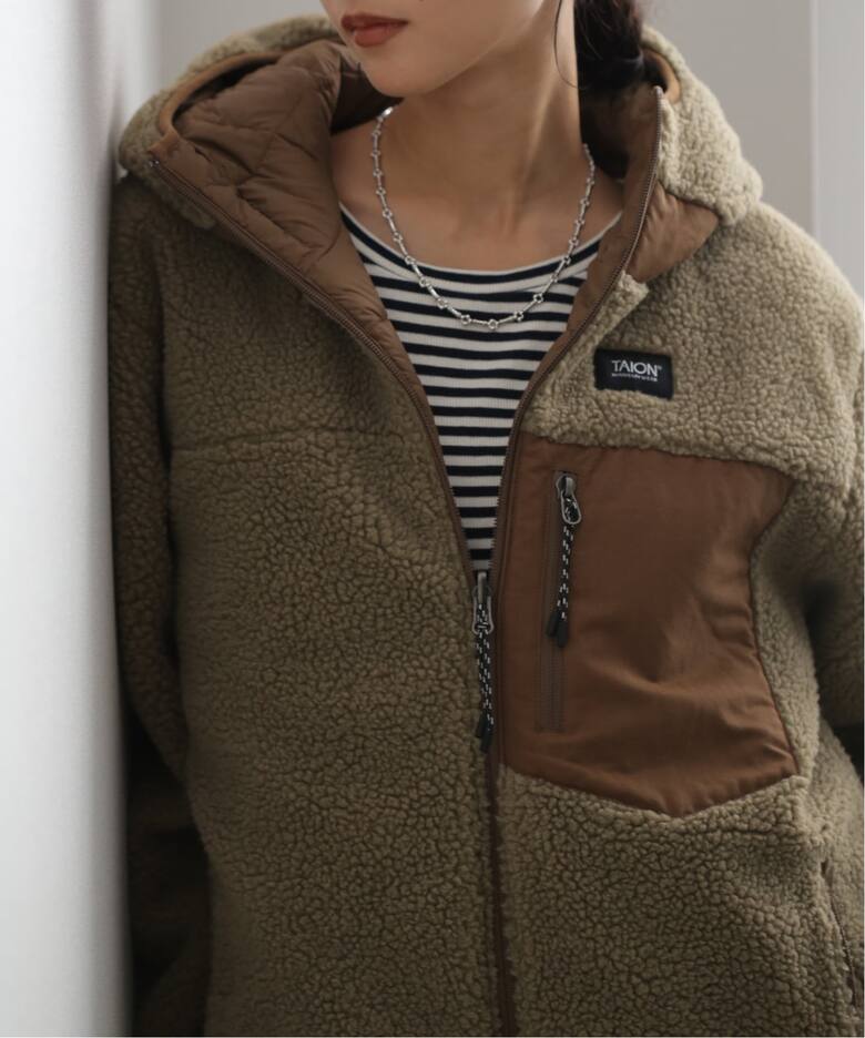 “ダウン×ボア”の2重構造は、風を通しにくく、しっかり防寒性を備えながら、 表裏で異なる素材感を楽しめます。