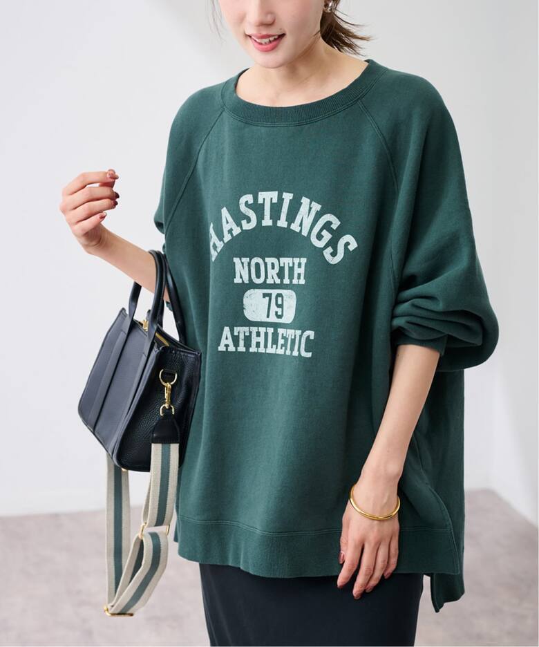 大人気のラグランポンチョスエット(25070220320040)のシルエットと素材はそのままに、カレッジテイストのプリントで新たな表情を加えたスエットが登場!