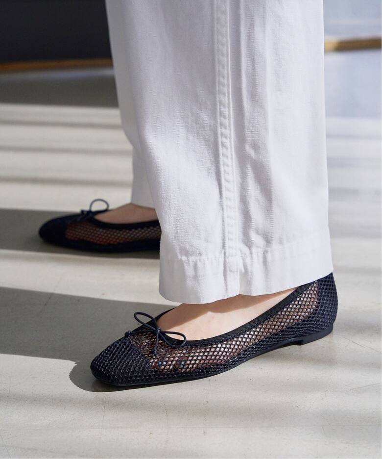 暑い時期にもラフに履けるネット素材のバレエシューズ。
