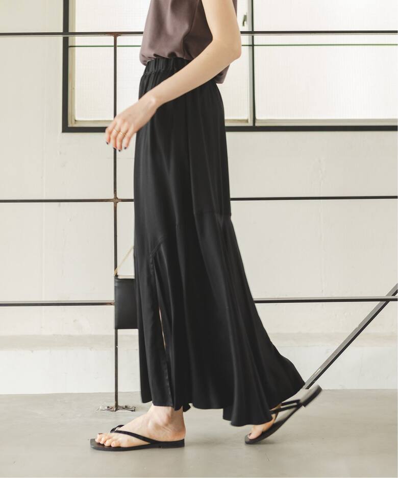 キュプラ混の繊細な微起毛感が特徴のサテン地を使用した大人フェミニンなスカート。