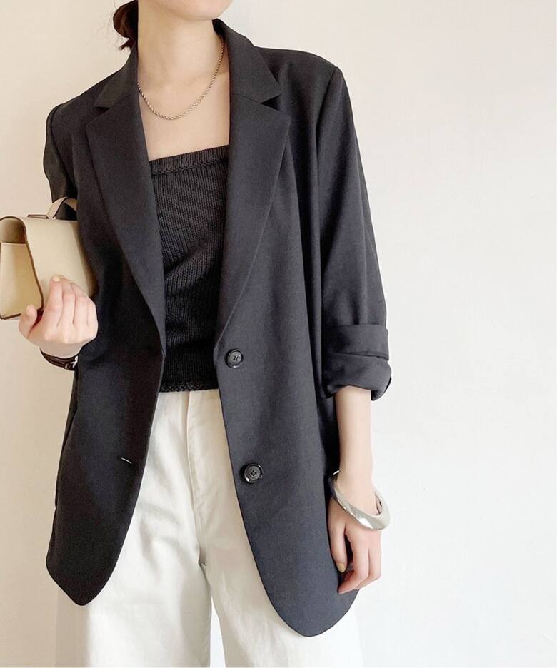 色で迷いましたが、珍しいグレー(黒とは違う青みがあるような)にひかれました。形もシングルですがポケットもあり、長すぎず、腕を捲っても綺麗に着られます。また裏がないので夏も肩にかけたいと思います。