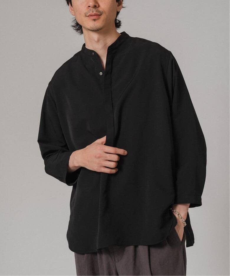 とろみのある落ち感のあるプルオーバーシャツです。 肌触りや着心地がとても良く、ボタンが見えないフライフロント採用でキチンと感があり8部袖なのでさりげなくおしゃれ。 このようなデザインと素材のプルオーバーはレディースでは見かけるが、メンズでほとんど見かけないです。 素材はポリエステルで風が余り通らないので真夏で暑すぎる。どちらかと言えば春か秋向けだと思う。 店頭で見た時に見惚れてしまい購入してしまいました^_^