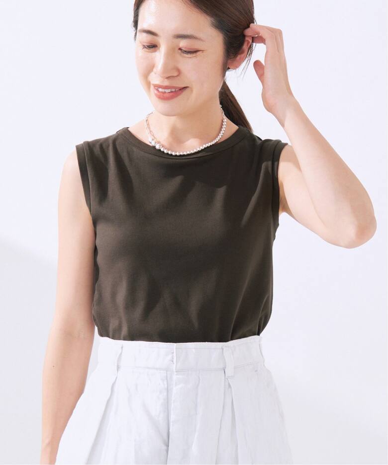 半袖のTシャツと悩み、店舗に伺いました。 普段は基本的に明るい色を着用します。しかし今回はブラックのボトムと合わせたかったので、今年の気分的にグレーと決めてました。イエベ春でグレー系は苦手ですが、こちらのグレーはくすみませんでした。ただ、ベージュもとても綺麗な色で… とにかく滑らかな生地と綺麗な表面感が好みでした。半袖も試着させて頂き、襟元のあき方が好みだったノースリーブに決めました。 脇も下着が見えない程度のあきで、袖がほんのり方に乗るので1枚でも着用しやすいです。 結局、2色買いとなりましたが後悔なし、ホワイトも欲しいくらいです。