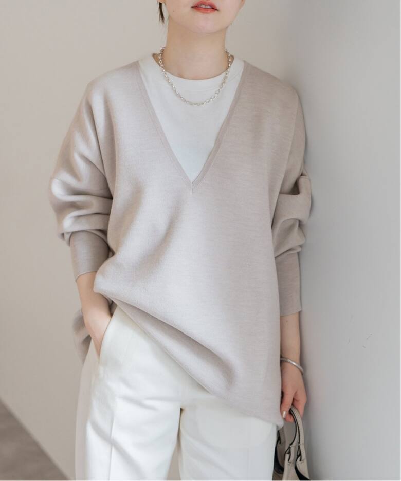 ずっと気になっていたトップスでしたが、正直なところもう少し着丈が短かったらいいのになぁと思っていました。ワタシが着たらきっと胴長に見えてバランスがとりづらいのだろうと思っていましたが… でも店頭で見ているとやはり気になり、試着してみたところ…良い意味で期待を裏切り、とても良い!!深いVの開き具合でスッキリ見え、そして絶妙なコクーンの着丈、すべてが計算されている感じがしました。横から見ると、ちょうどヒップが隠れてスッキリと収まり、華奢見えして決して胴長には見えませんでした。笑 ダブルサテンスカートのホワイトにインナーは黒タートルで合わせたら、スッキリとしてこなれ感がありとても相性が良かったです。 黒パンツでオールブラックコーデにゴールドアクセで合わせても、かっこいい感じで新しい感じがしました。 秋から春にかけて、中のインナー次第でいろいろ楽しめるので活躍する一枚だと思います。 ワタシ的には、今季一番のヒット!! 気になられている方は、ぜひ試着してみて欲しいです。