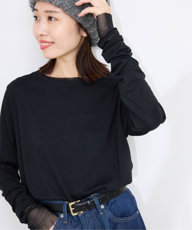 薄手のカットソーで柔らかくインナーとして着やすい。ボーダー柄なので1枚で着てもあまり下着が透ける感じはしません。 袖口のチュール部分は引っ掛けると繊維がつれてしまうので注意が必要。 身頃の裾が切りっぱなしの加工なので、くるくるしてしまい、ボトムスにインする時はちょっと気になります。