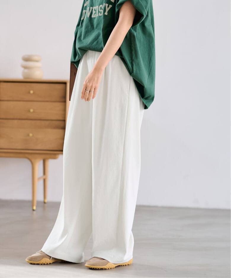 フレームワークさんは本当にパンツが優秀だと思います。ここ何年か暑くてデニムを含め綿素材のパンツは夏履けなくなりました。汗が乾かないくらい暑いので。このパンツに限らずですが、ポリエステル混の素材のボトムスに毎年助けられています。履き心地も形も抜群にいいと思います。