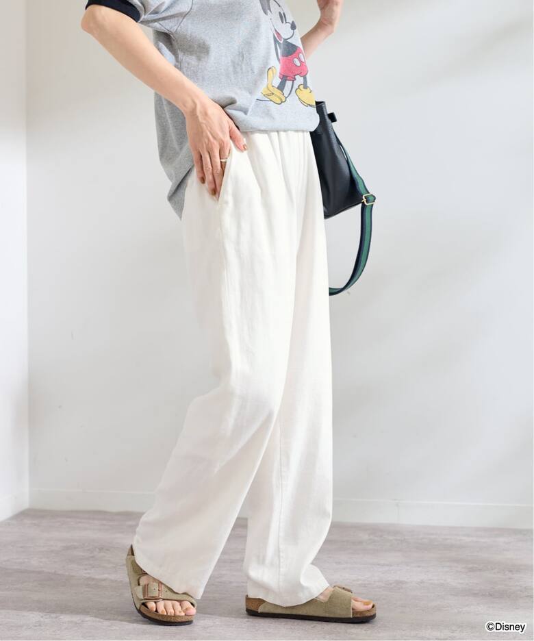 ウエスト総ゴムで履きやすい。 履いた感じはストンとしたストレートで、キレイめにもカジュアルにも振れる感じ。 リネンシャツがとても合います! 色は白に近いです。生地はしっかりしているというか、少し厚め。真夏は暑いかもしれないですね。 高身長としては丈感がしっかりあって嬉しい!大体、どこのパンツも丈が足りず、つんつるてんで格好悪くて試着でやめる事が多いので、丈長めはこれからも生産してほしいです。